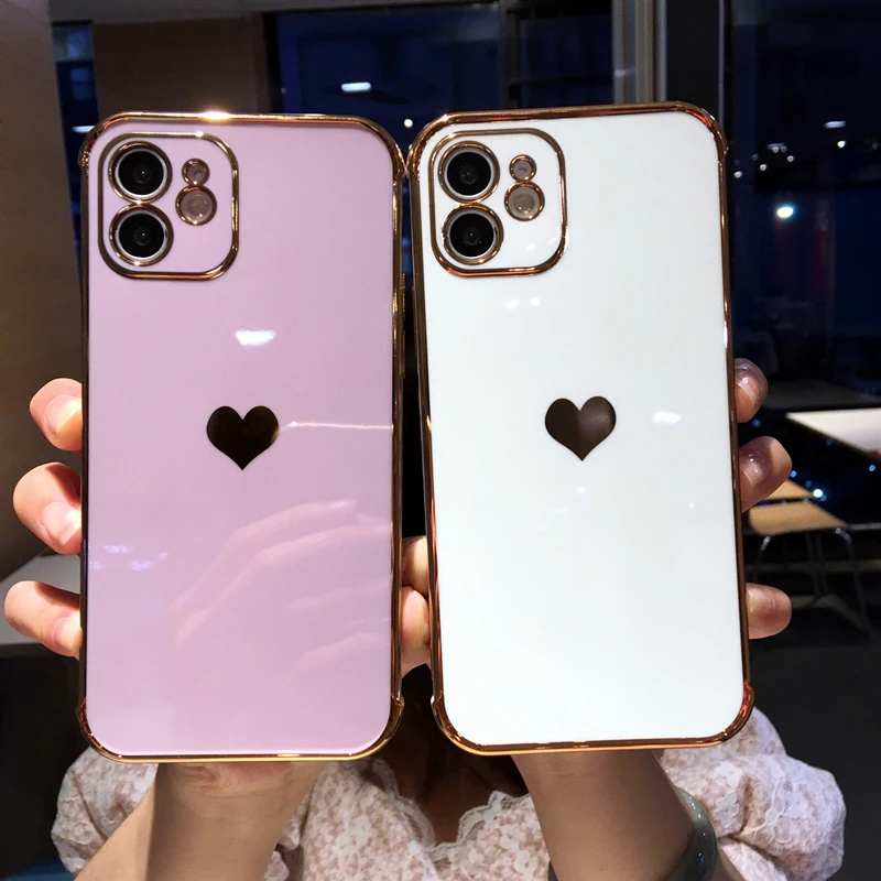 Блестящий чехол с милым сердечком для iPhone 12 11 Pro Max XS Max X 7 8 Plus, мягкий IMD, однотонный, с защитой от падения, задняя крышка