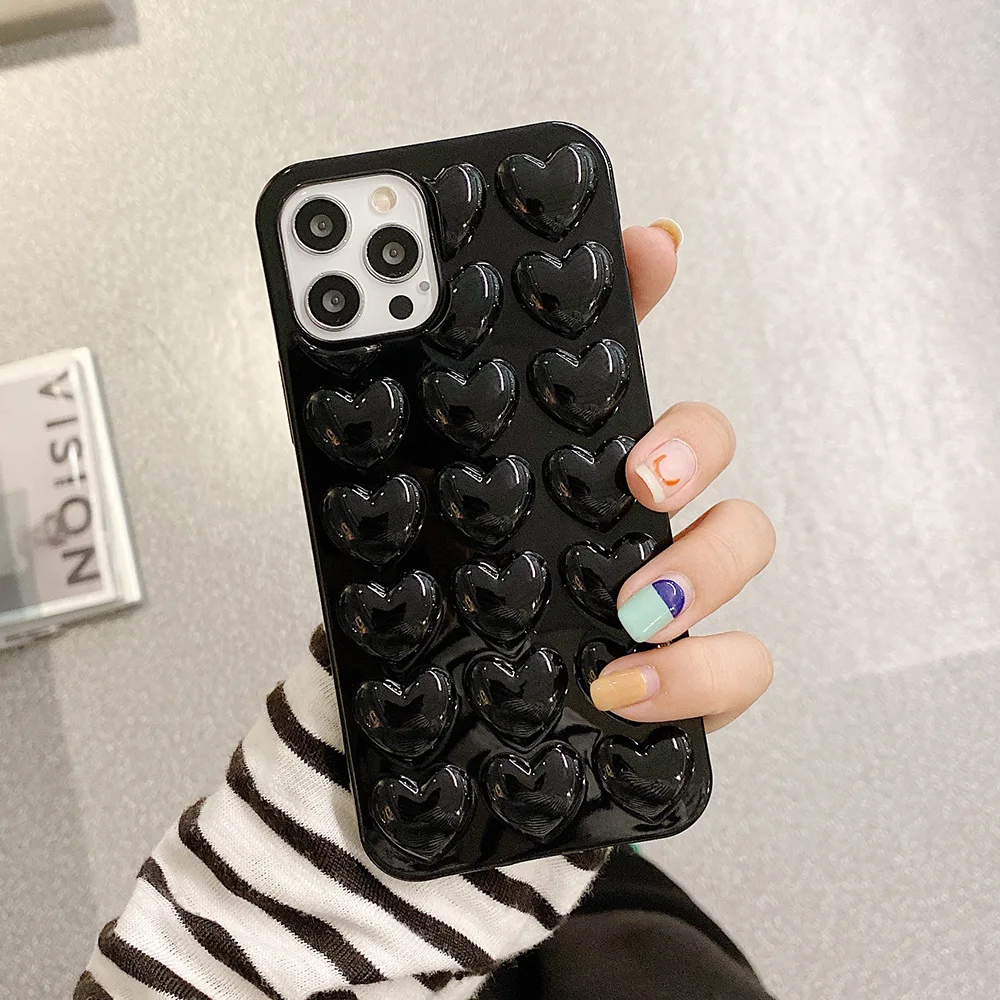 Мультяшный 3D чехол для телефона с любовным сердцем карамельных цветов для iPhone 11 12 Pro Max XR XS Max X 7 8plus SE2020, Прозрачная мягкая задняя крышка из ТПУ