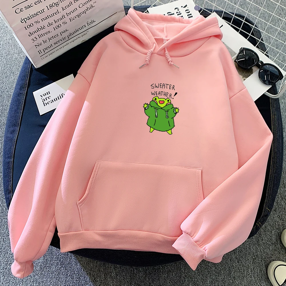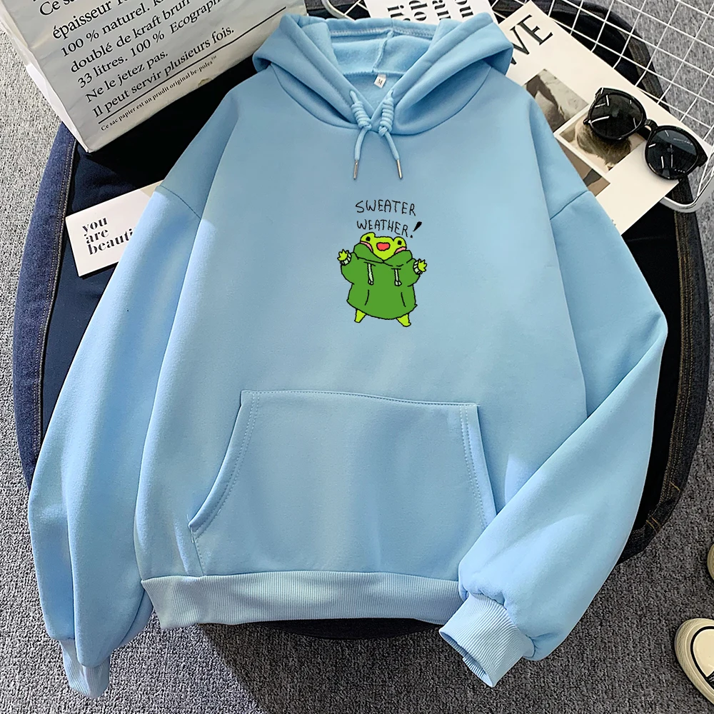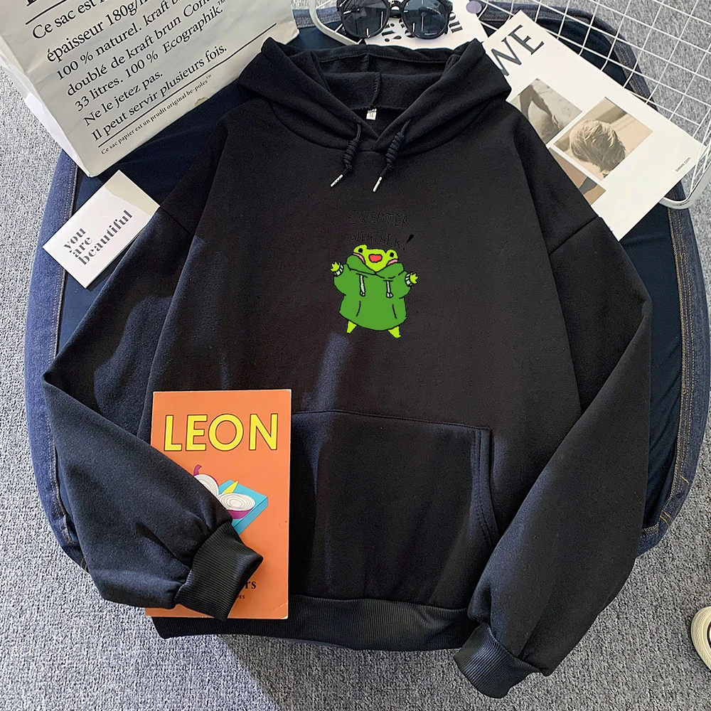 Толстовка женская оверсайз с капюшоном, повседневный Свободный пуловер с длинным рукавом, с рисунком лягушки, свитшот с надписью, уличная одежда