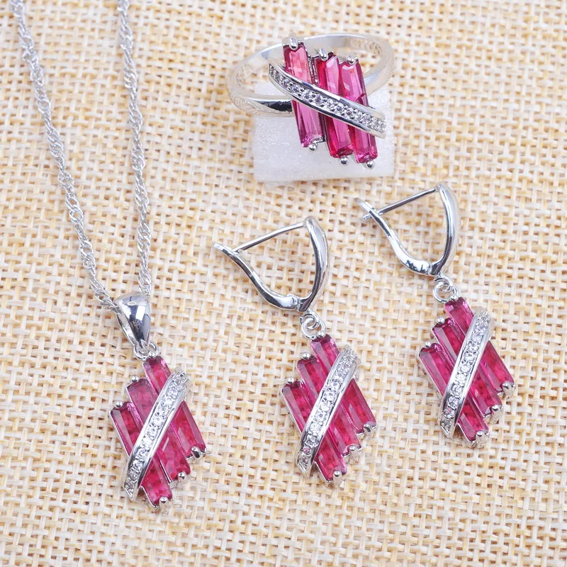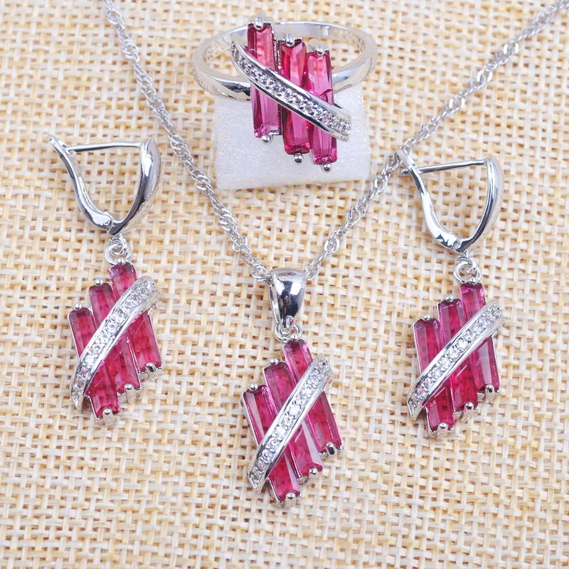 Изумительный русский Стиль набор украшений для женщин Красного и розового цвета с украшением в виде кристаллов кубического циркония серьги кольцо ожерелье кулон 2020 Новый icon star icon star icon star icon star icon star