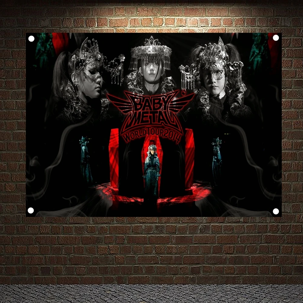 Металлические наклейки в виде кровавой музыки BABYMETAL, скалы, фотообои, баннеры, настенные флаги, гобелен, художественное украшение для дома