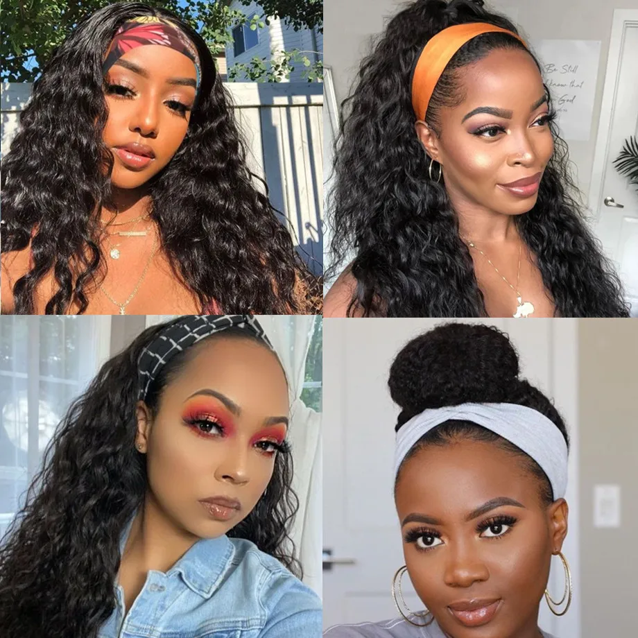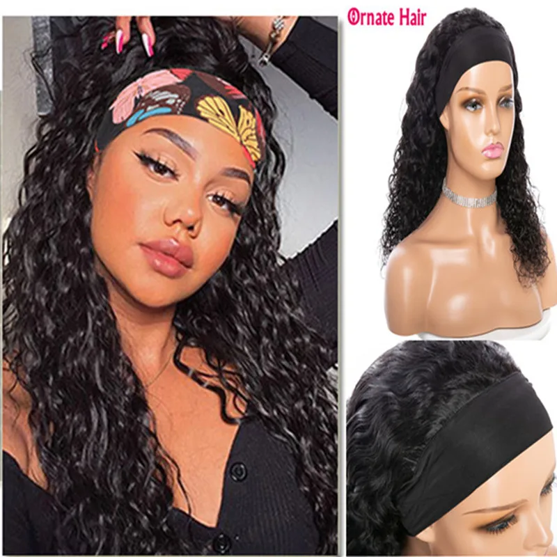 Монгольский Волнистые парик с головной повязкой для черный Для женщин полный парик фабричного производства богато волосы волнистые человеческие волосы Wigs150 % плотность