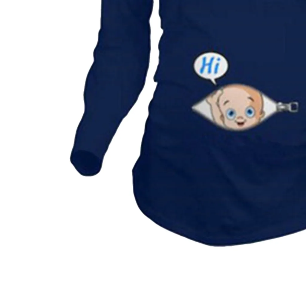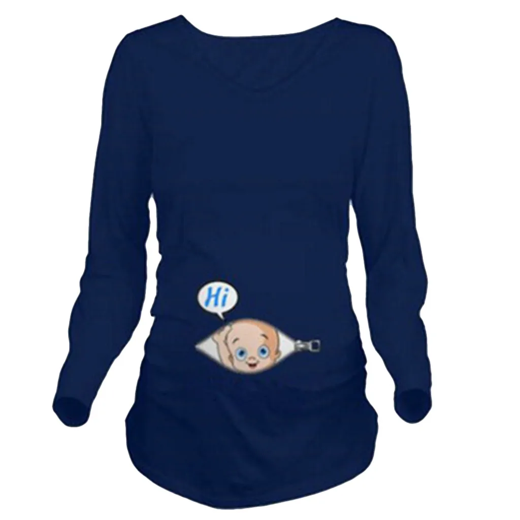 Зимняя модная повседневная одежда для беременных женщин футболка с принтом в кармане для беременных