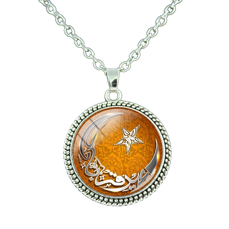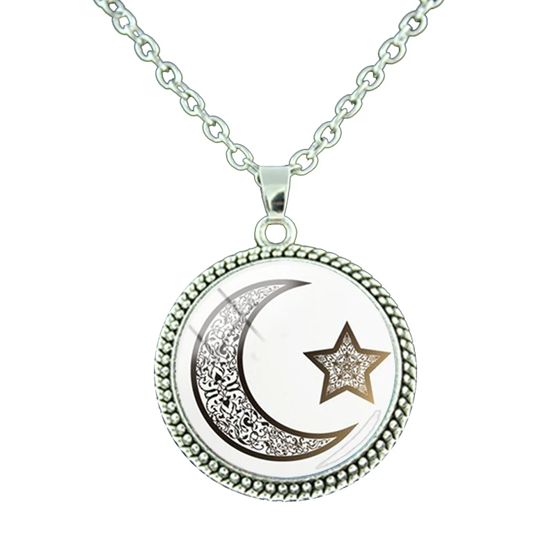 Мусульманский Исламский кулон Hajj Umrah ожерелье стеклянный купол луна звезда кулон круглый кулон женское ожерелье подарок ювелирные изделия NT441Изображения продуктов: