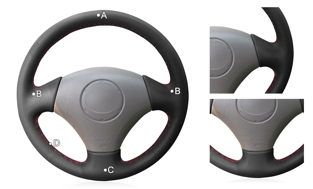 Сшитая вручную черная оплетка рулевого колеса из искусственной кожи...