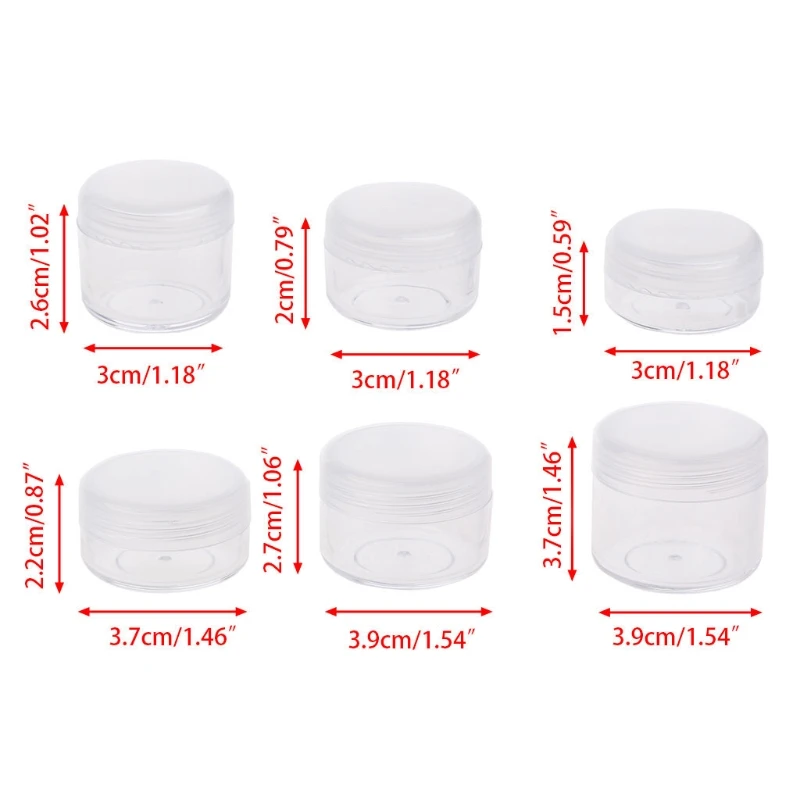 Особенности:OOTDTYИдеально подходит для отбора образцов кремов для лица, теней для век, лосьонов для бальзама для губ и других косметических средств или средств по уходу за кожей.Удобно для хранения предметов для дизайна ногтей и других бит и ботинок, таких как бусы, драгоценные камни, орнамент, серьги, кольца и броши и т. Д.Прозрачный дизайн, сохраняет различные предметы отдельно и помогает вам найти их с первого взгляда.Здоровый материал, без запаха, безопасный и прочный.Компактный и Сверхлегкий вес, хорошо герметичный, водонепроницаемый.Идеально подходит для путешествий или в косметическом мешке.Удобно носить с собой во время деловой поездки, путешествия и т. Д.6 размеров на выбор.Характеристики:Цвет: прозрачныйМатериал: полипропиленЕмкость: 3g/5g/8g/10g/1 5g/20gРазмер (DiaxH): 3g: 3x1.5 см/1,18x0,59"5g: 3x 2 см/1,18x0,79"8 г: 3x2, 6 см/1,18x1,02"10 г: 3,7x2, 2 см/1,46x0,87"15 г: 3,9x2, 7 см/1,54x1,06"20 г: 3.9x3.7 см/1,54x1,46"Количество: 1 шт.Примечание:1. Перевод ед. измерения: 1 см = 10 мм = 0,39 дюймов2. Допускается погрешность в 0-3 см из-за ручного измерения. Пожалуйста, убедитесь, что вы не возражаете, прежде чем сделать ставку.3. Из-за разницы между различными мониторами изображение может не отражать фактический цвет изделия. Спасибо!Посылка включает в себя:1 шт. x Коробка для хранения косметики