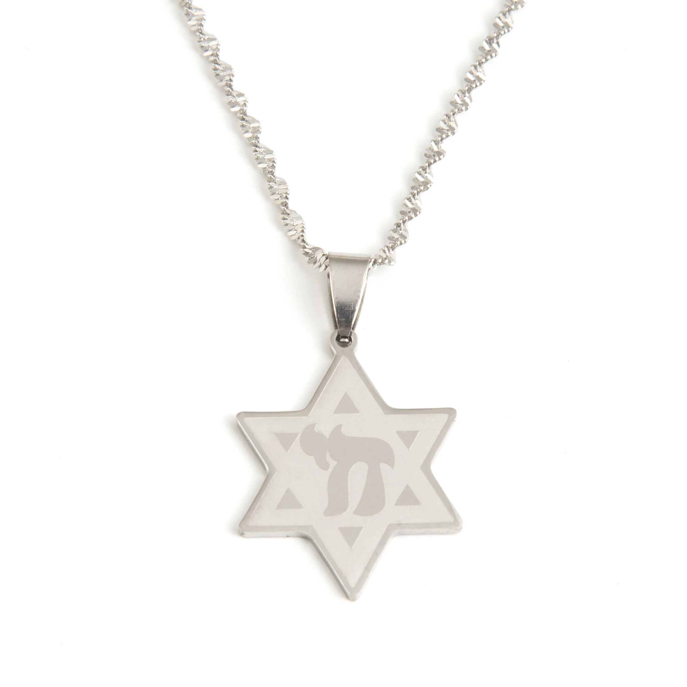 Звезда Давида из нержавеющей стали W/Chai символ кулон ожерелье модный серебряный цвет евреи звезда цепь ювелирные изделия