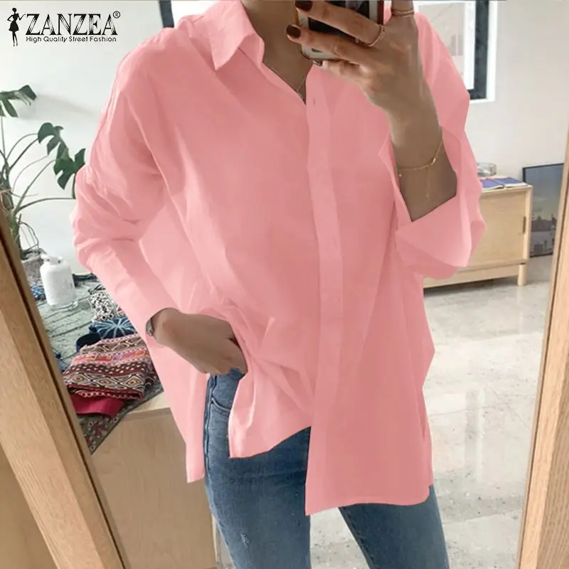 Женская мешковатая однотонная блузка ZANZEA 2021, винтажные топы с ...