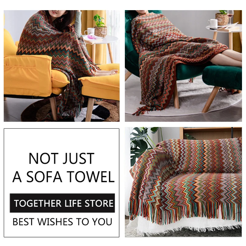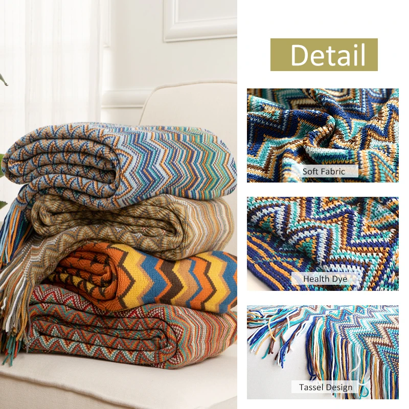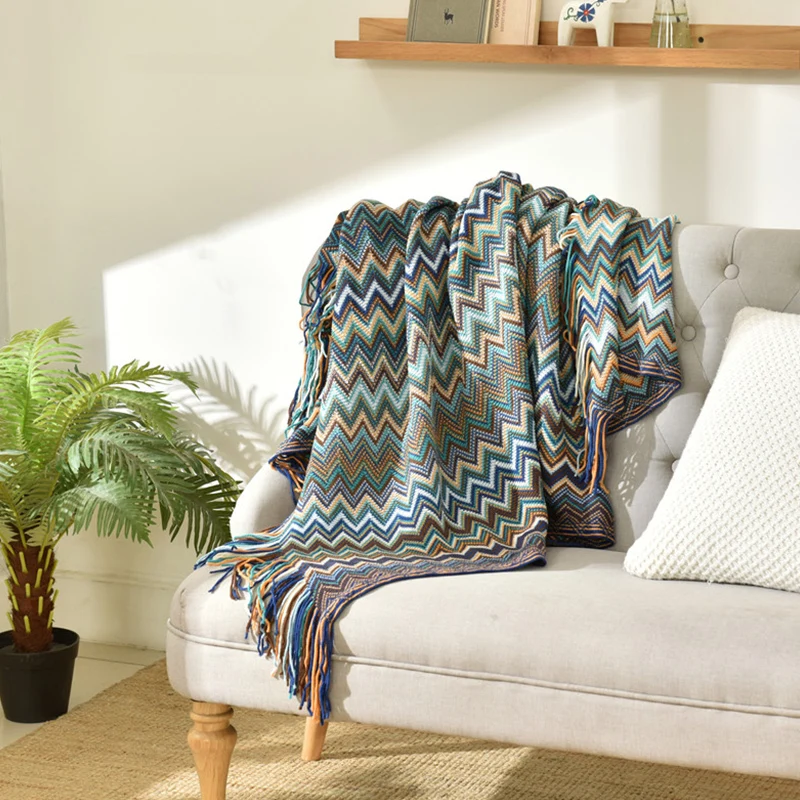 Покрывало для дивана, с геометрическим узором, вязаное, многофункциональное, в стиле бохо