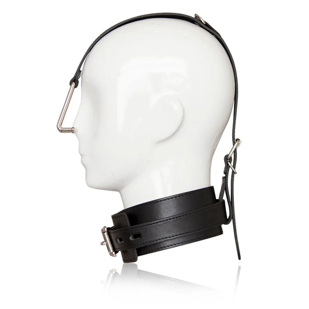Нержавеющаясталь металлический воротником носом крючок Регулируемая из искусственной кожи БДСМ голова жгут бондаж секс-игрушки для сдерживания для женщины