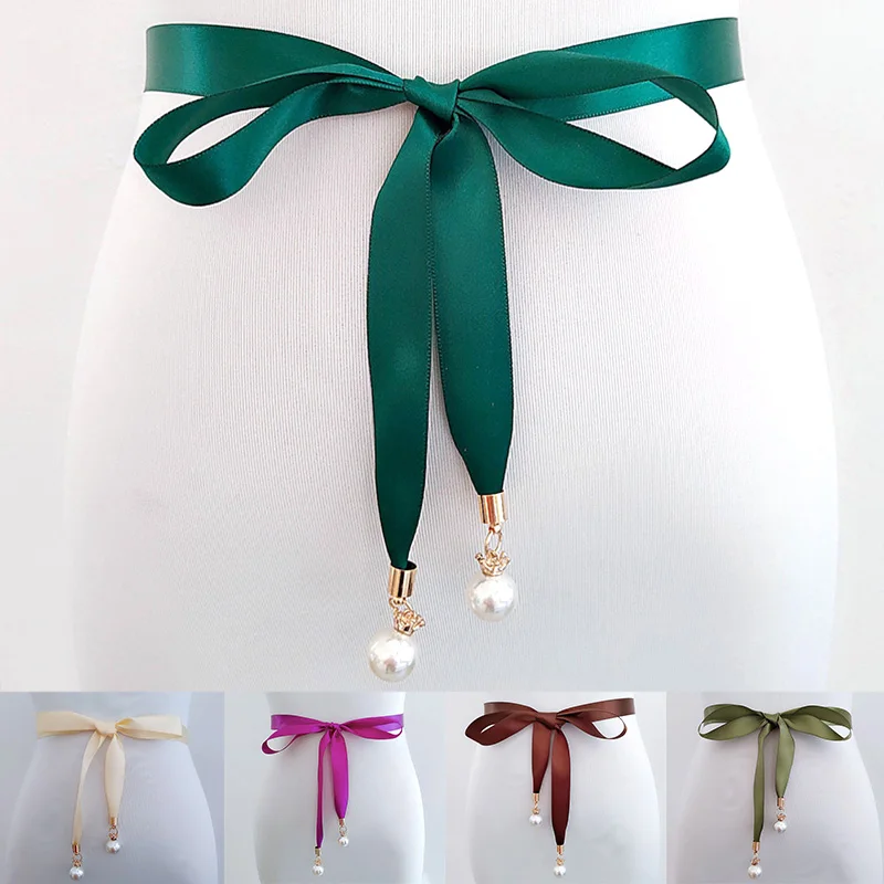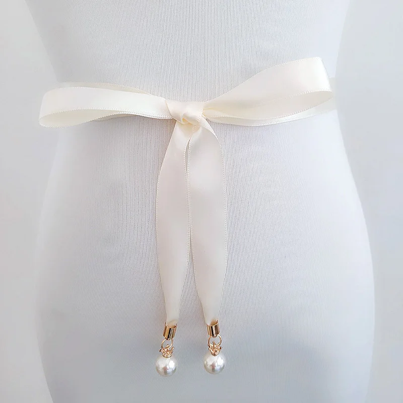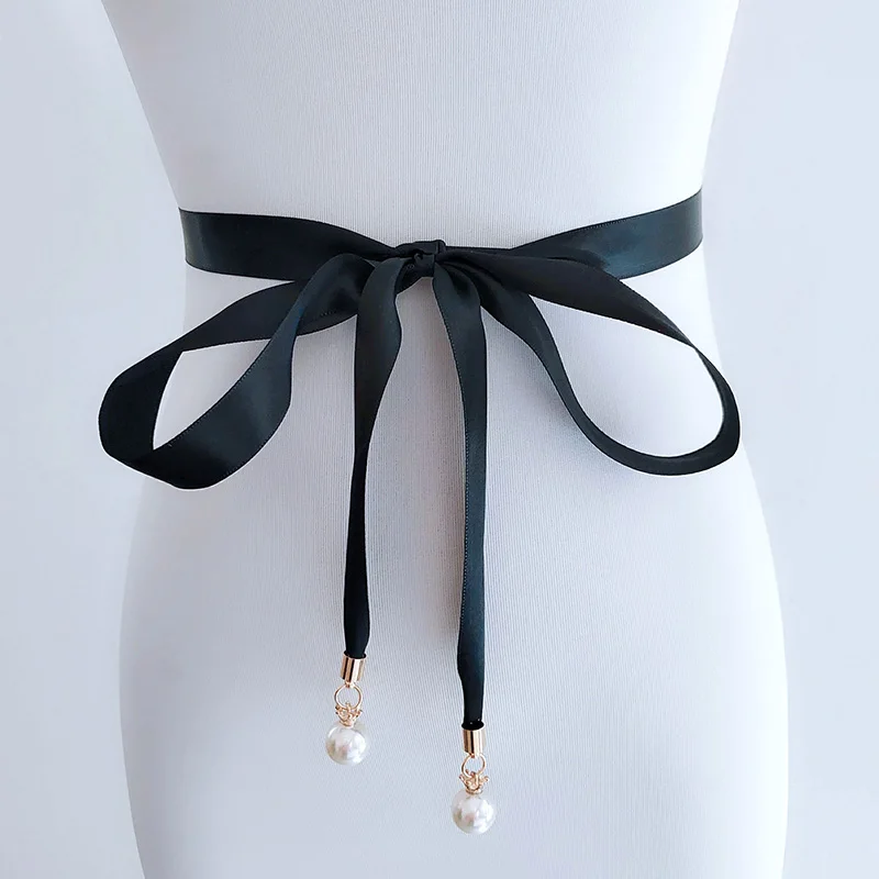 Элегантное жемчужное ожерелье Кулон Стильное платье на выпускной с поясом Двусторонняя атласная лента ремень с жемчугом тонкий свадебное платье высокое качество; Для свадьбы с поясом