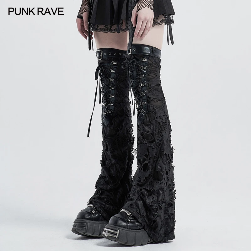 Женское облегающее платье в стиле Панк RAVE, эластичное трикотажное платье в стиле панк с отверстиями, теплые зимние меховые гетры до колена