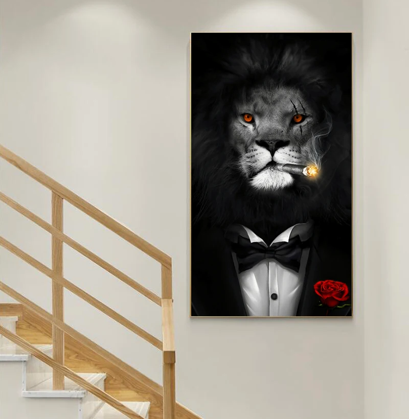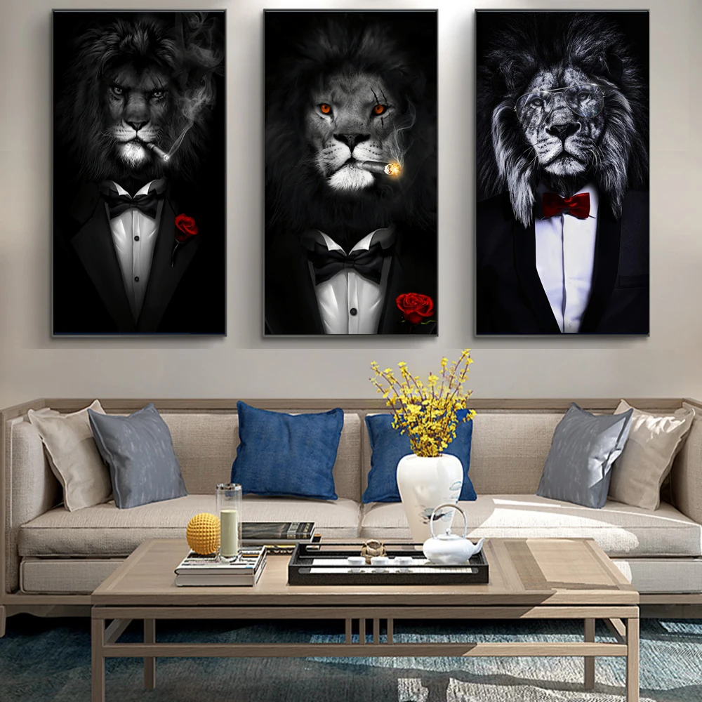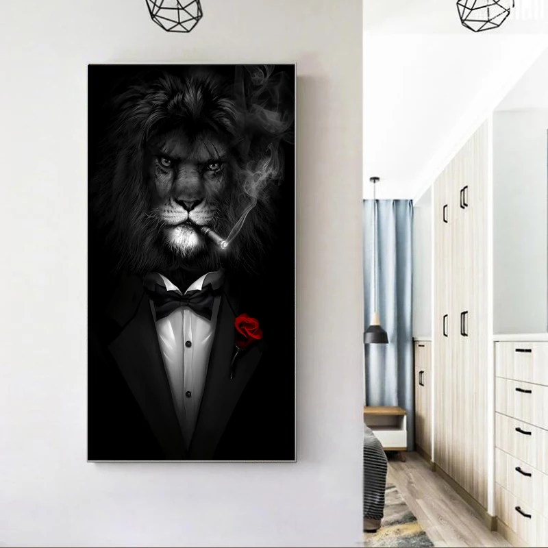 Тигр Лев в костюме Роза курительная Печать на холсте картина джентльмен изображение животного на стене гостиная украшение для дома постер