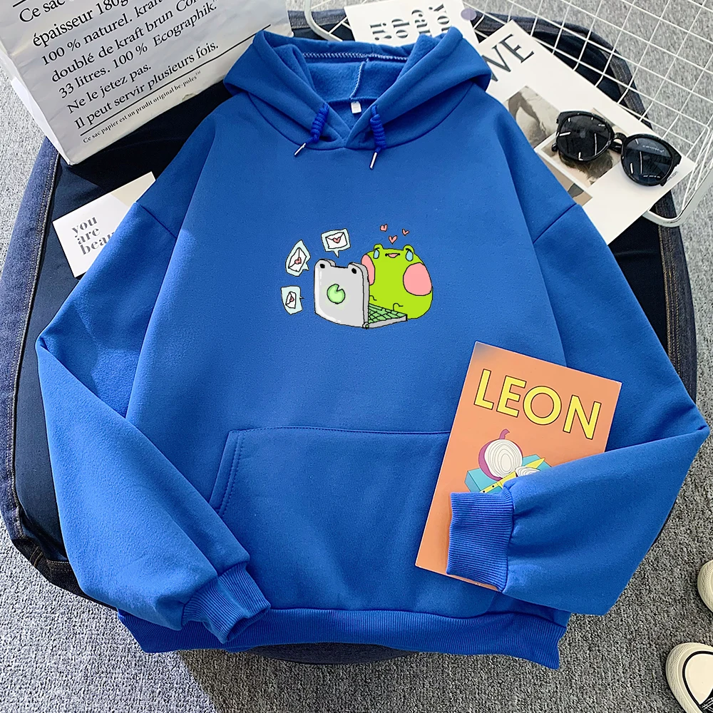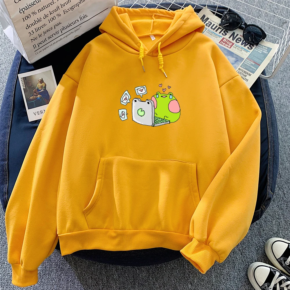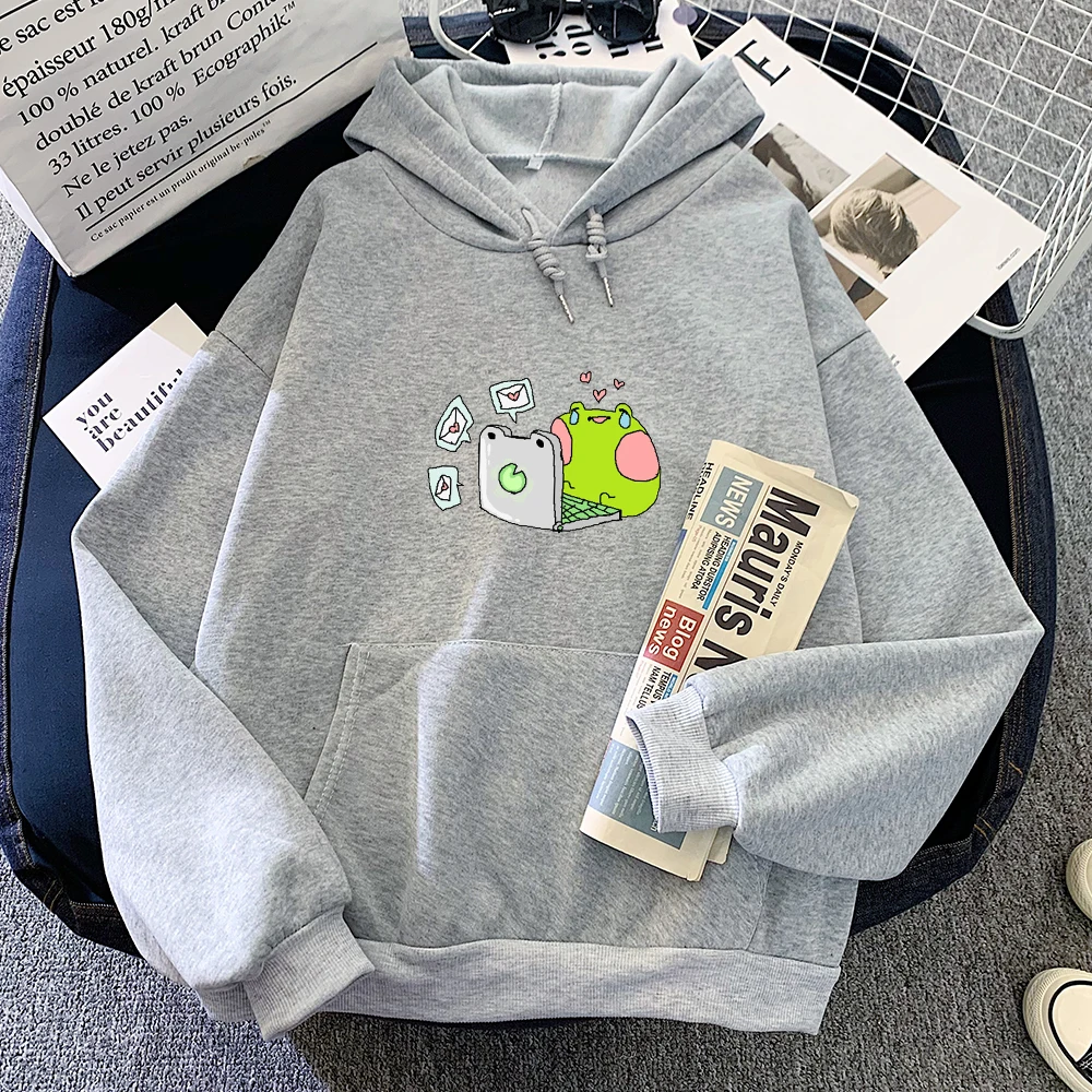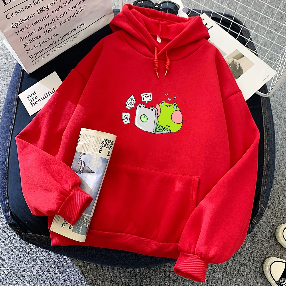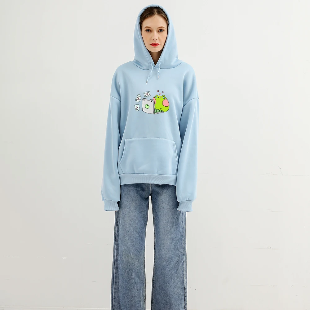 Зима Осень теплая толстовка женская Свободная оверсайз толстовка с капюшоном Harajuku Sad с рисунком лягушки Повседневная забавная Толстовка Пуловер женский Стиль: Повседневный,Вес: 450 г