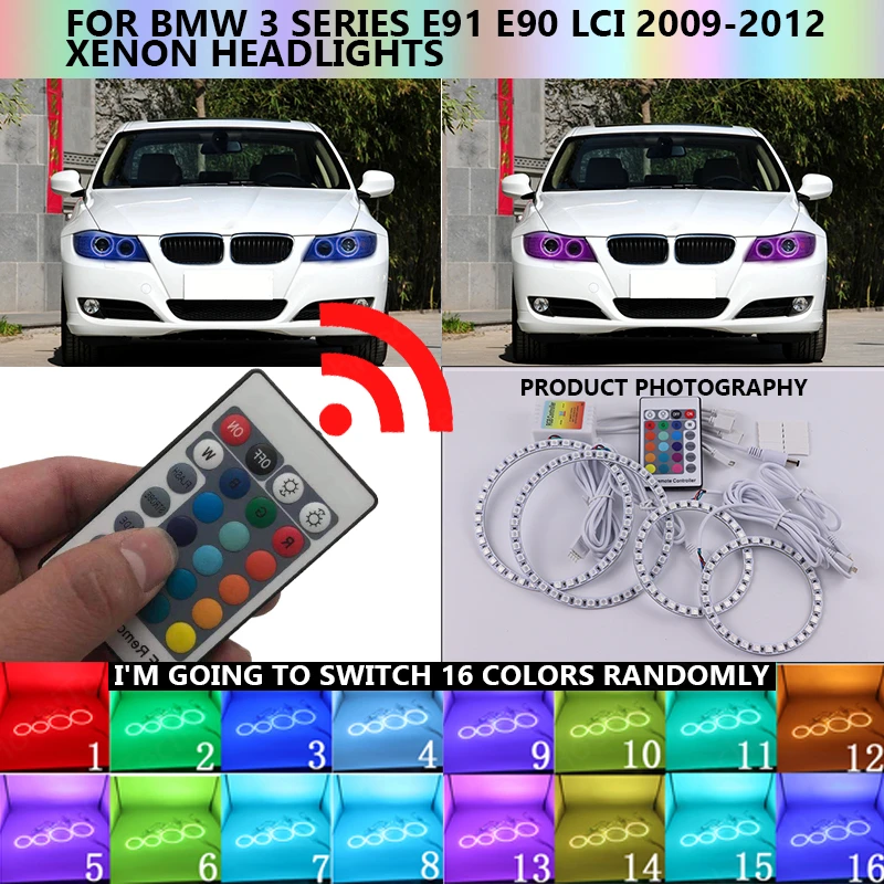 Многоцветный комплект светодиодов глаза ангела RGB гало кольца дневного светильник Led DRL для BMW 3 серии E91 E90 LCI 2009-2012 ксенон головной светильник s