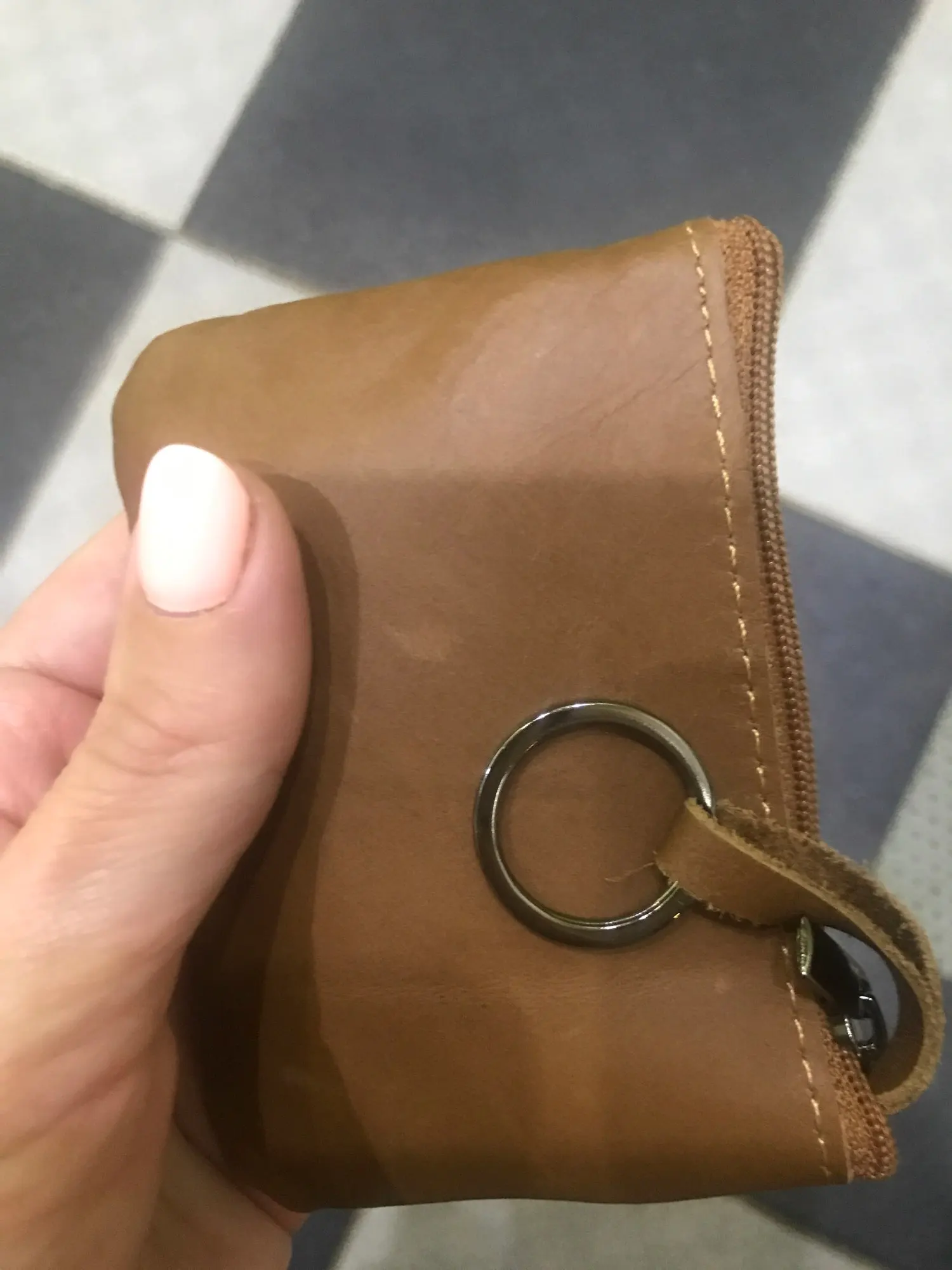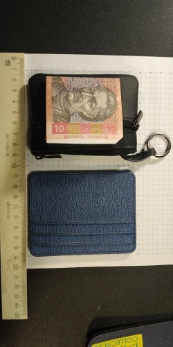 Качество хорошее. Прошит хорошо. Пахнет натуральной кожей. На вид очень похоже на кожу. Не жёсткий, как это бывает с воловьей кожей. Два отделения на молнии. Внутри тканевая подкладка. Тканевая подкладка и между отделениями. Подходит для кредитной карты, и небольших сумм, что бы купюры не сминались в кармане джинс. Прошит хорошо. Быстрая отправка. Размеры видно на фото.