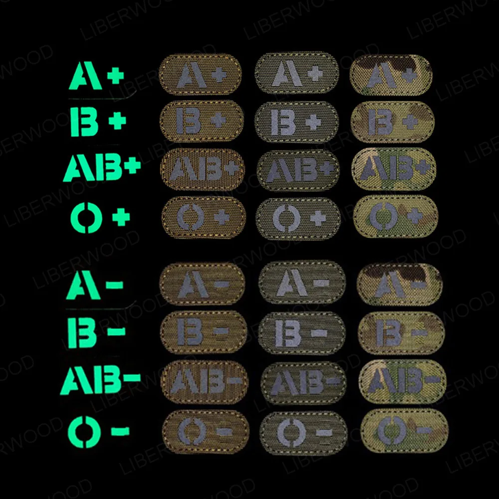 Крови Тип A B O AB POS положительный отражающая вставка светятся в темноте военные тактические аппликация сp Multicam на застежке-липучке, нарукавная нашивка