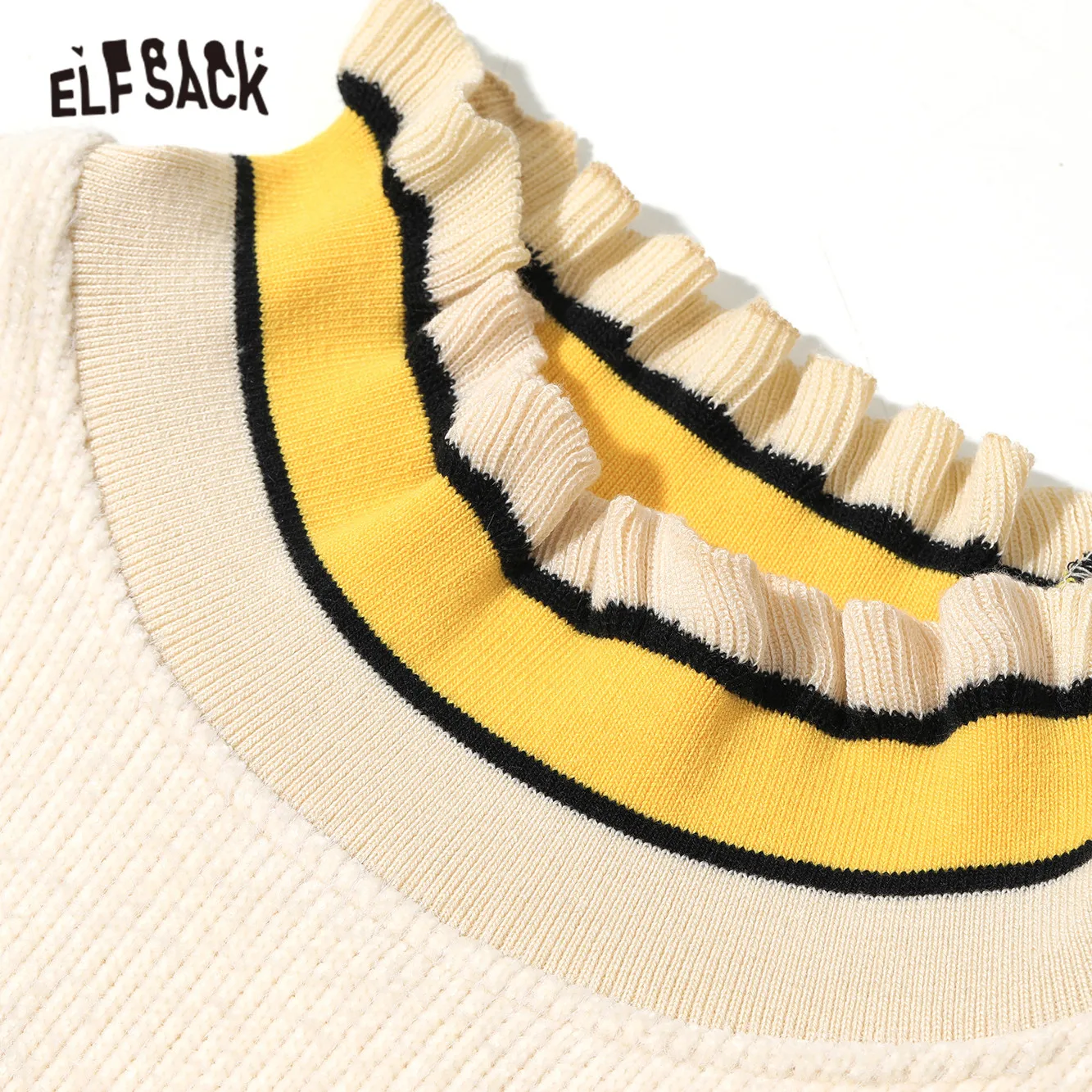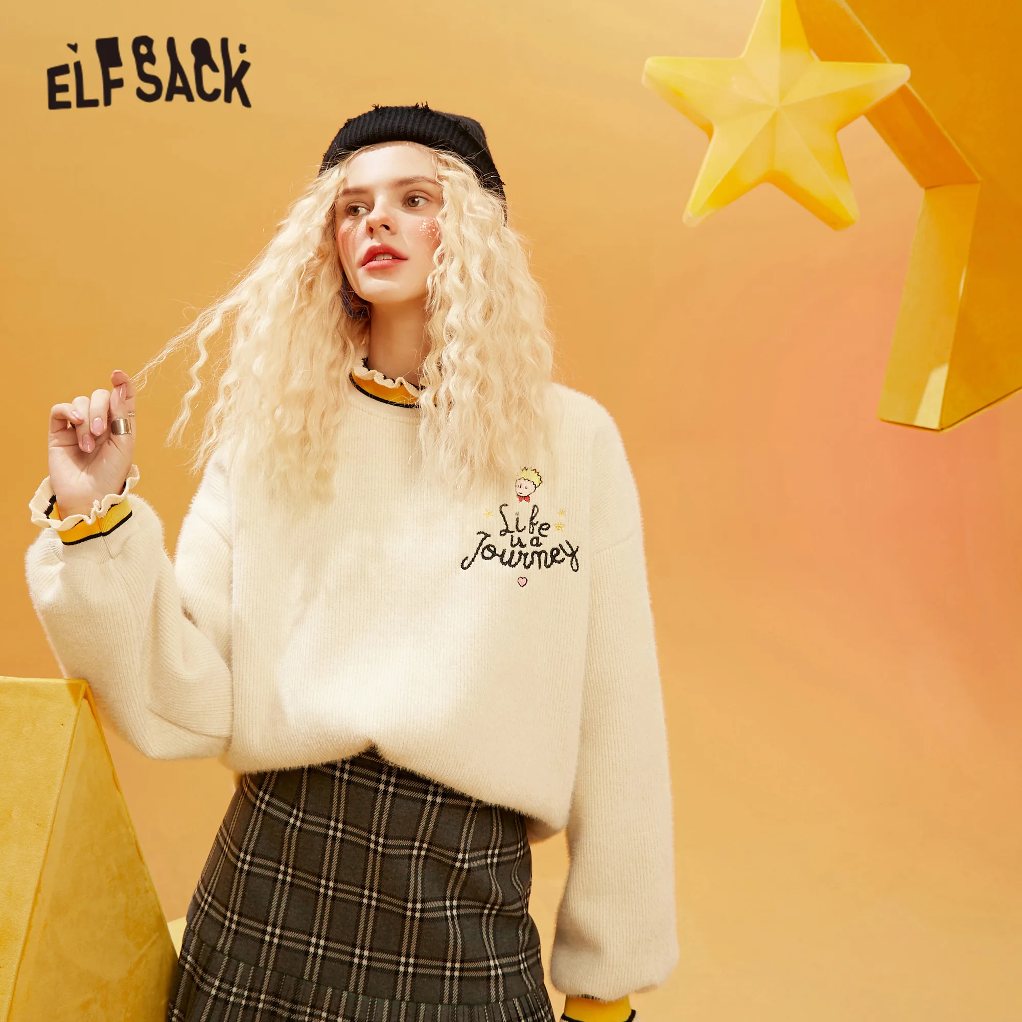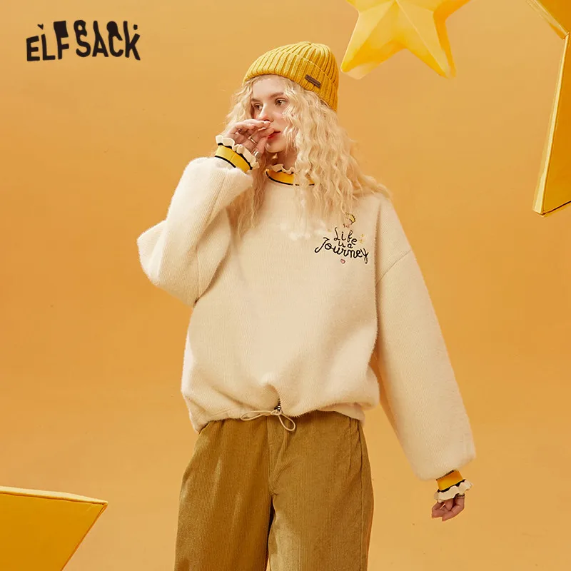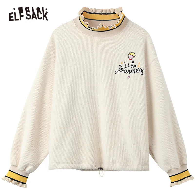Женский свитшот с вышивкой ELFSACK, Повседневный пуловер оверсайз с бархатной завязкой, корейский топ с оборками для девушек, зима 2021