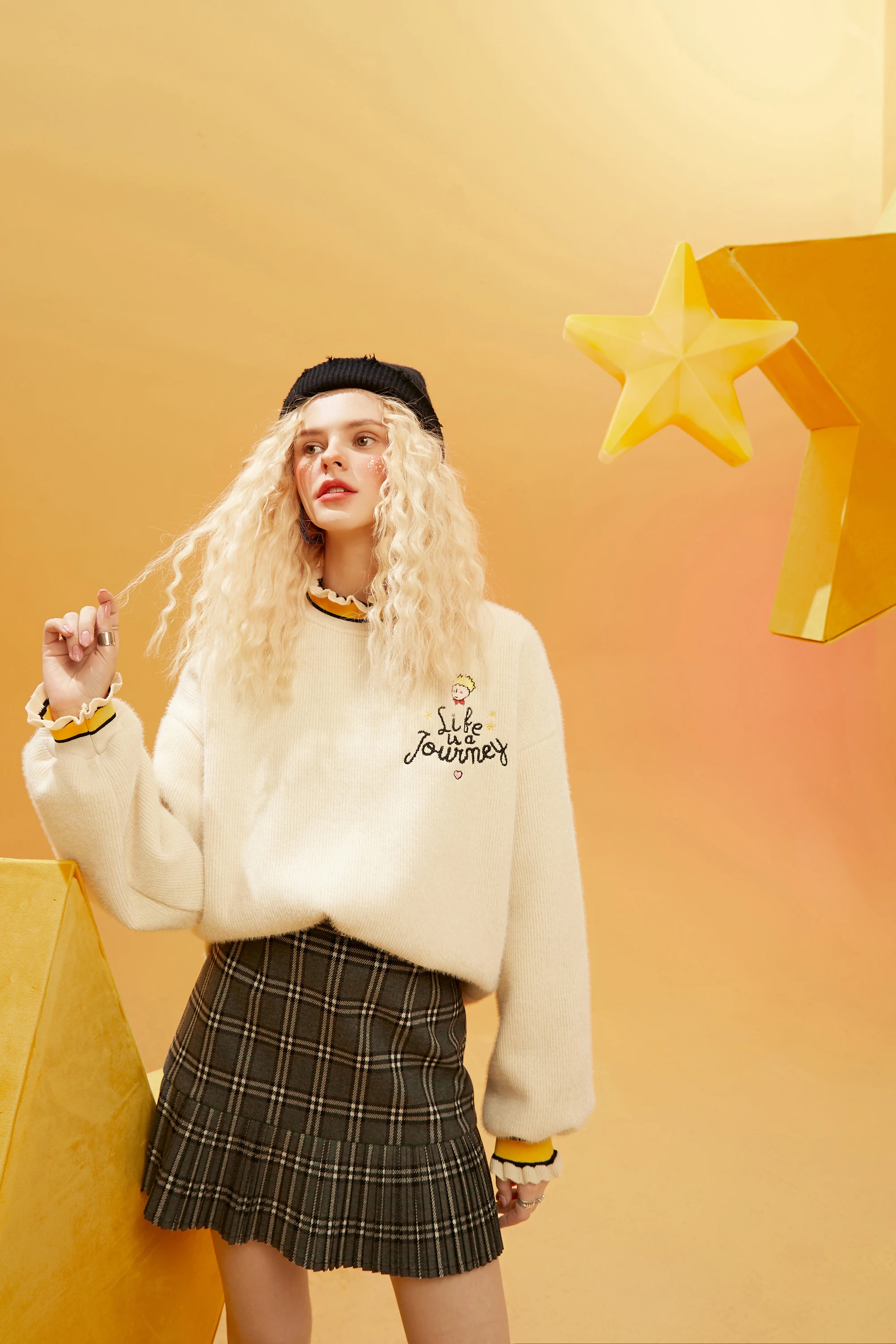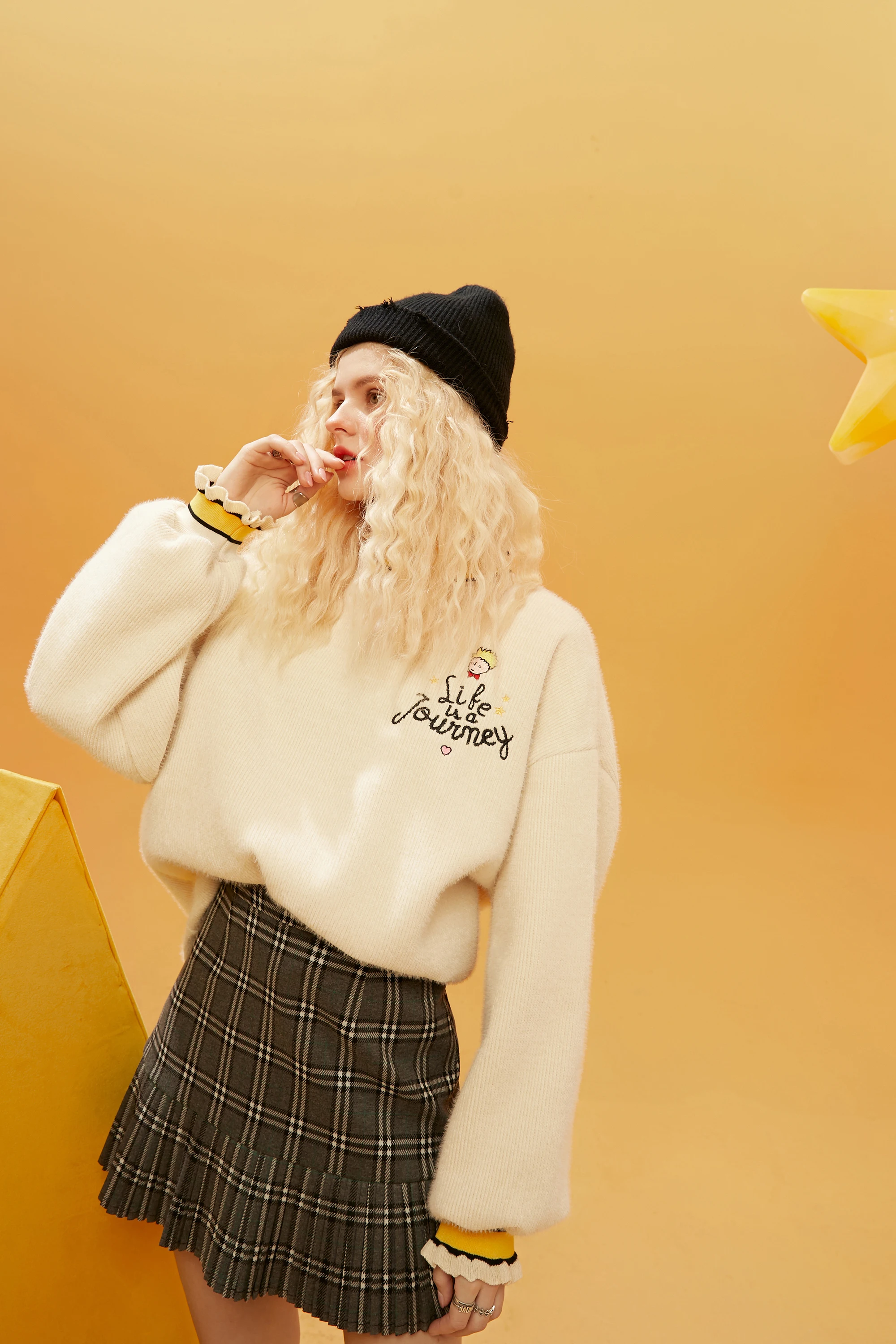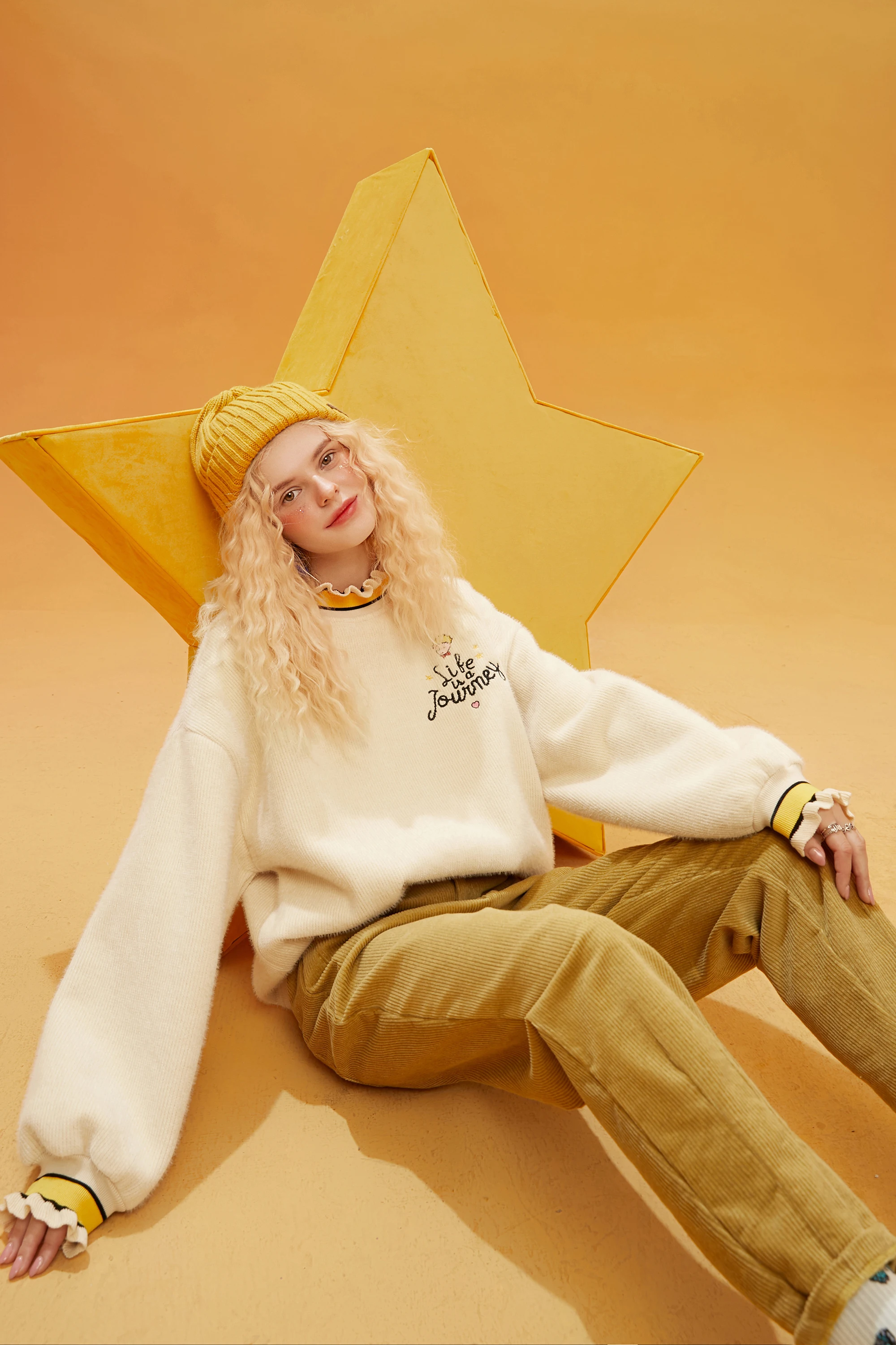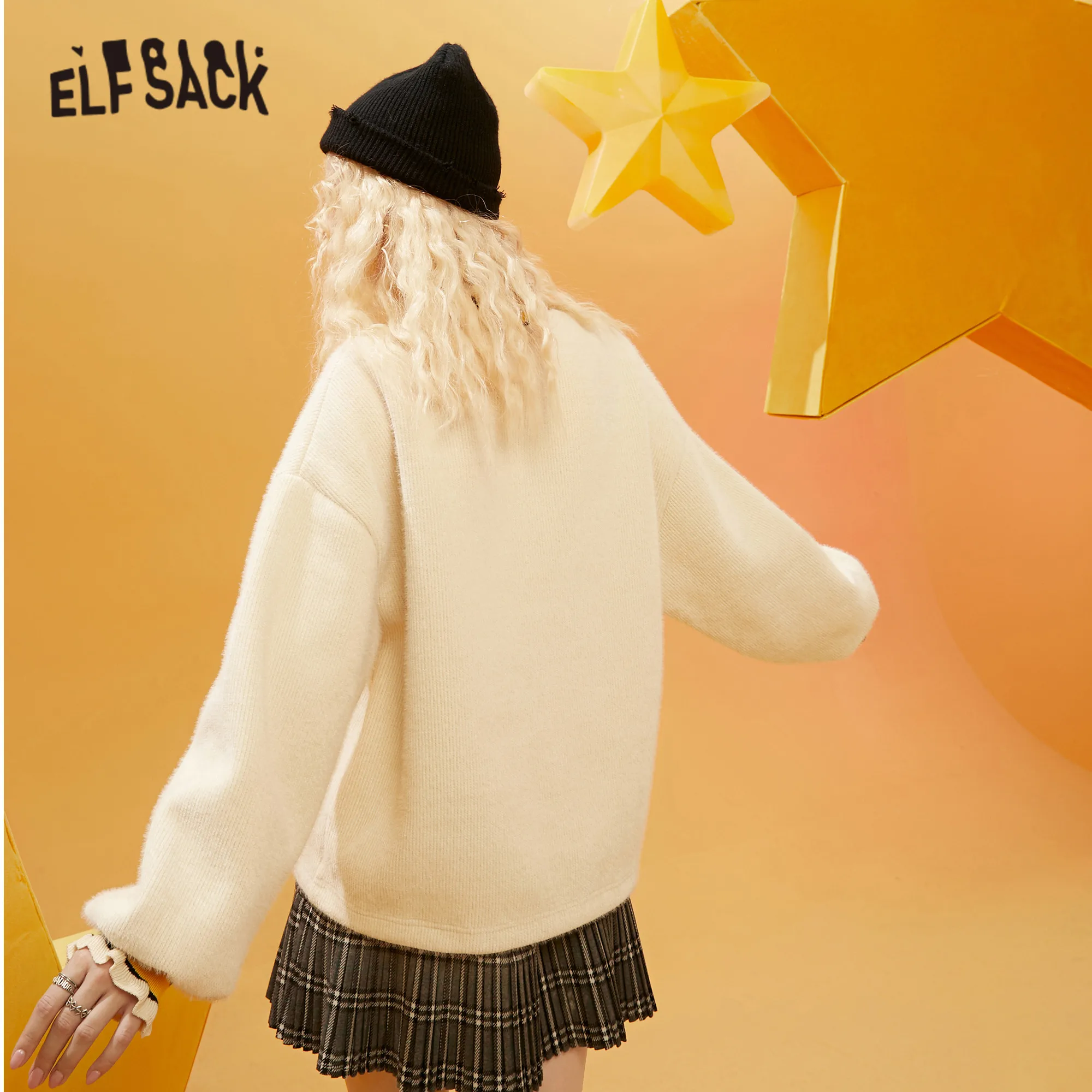 Женский свитшот с вышивкой ELFSACK, Повседневный пуловер оверсайз с бархатной завязкой, корейский топ с оборками для девушек, зима 2021