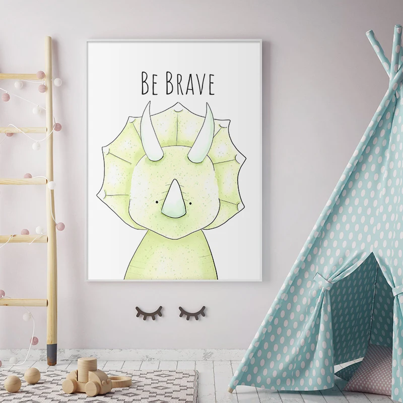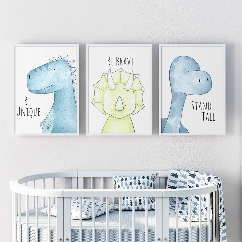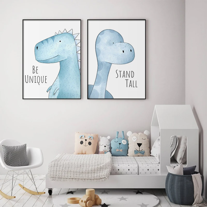 Милый мультяшный динозавр, БУКВЕННОЕ слово, холст, плакат для детской стены, художественный принт, современная живопись для детей, украшение для спальни, картина