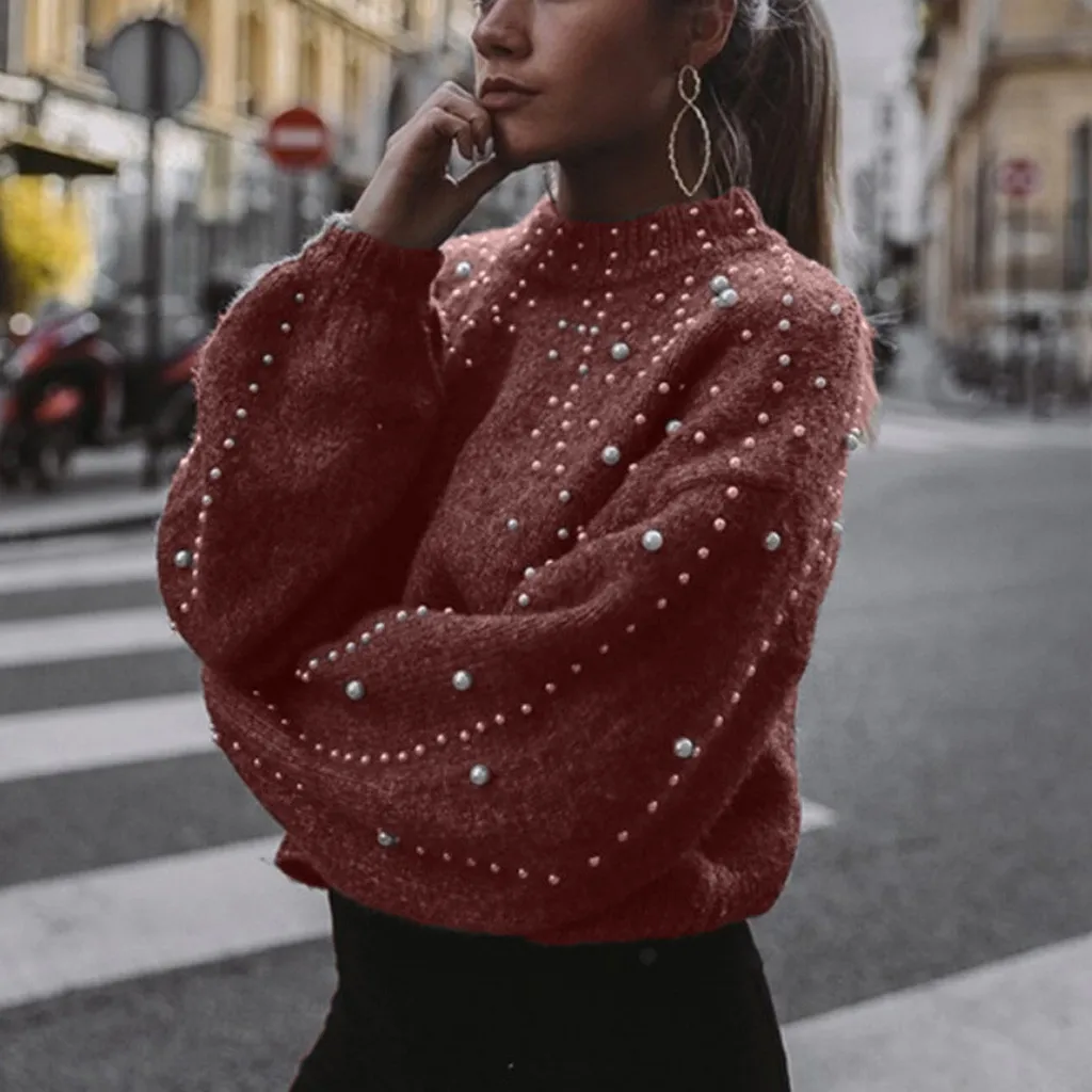 Женский Повседневный свитер, толстый пуловер с длинным рукавом и круглым вырезом, свитер на осень и зиму, Повседневная Свободная Женская одежда с жемчугом # s5