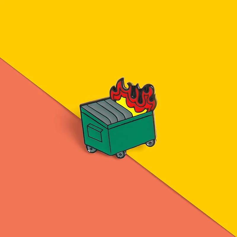 Эмалированный значок XEDZ с изображением зеленого огня, мусорного в...