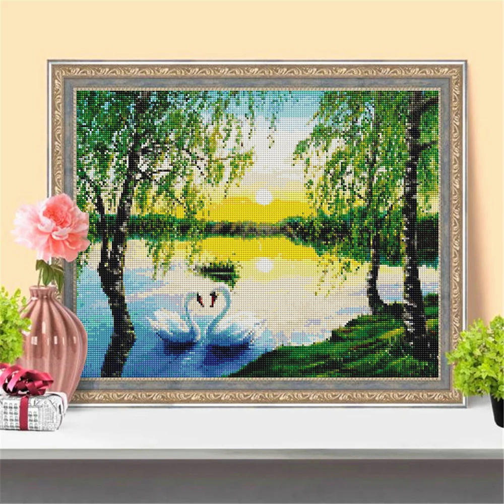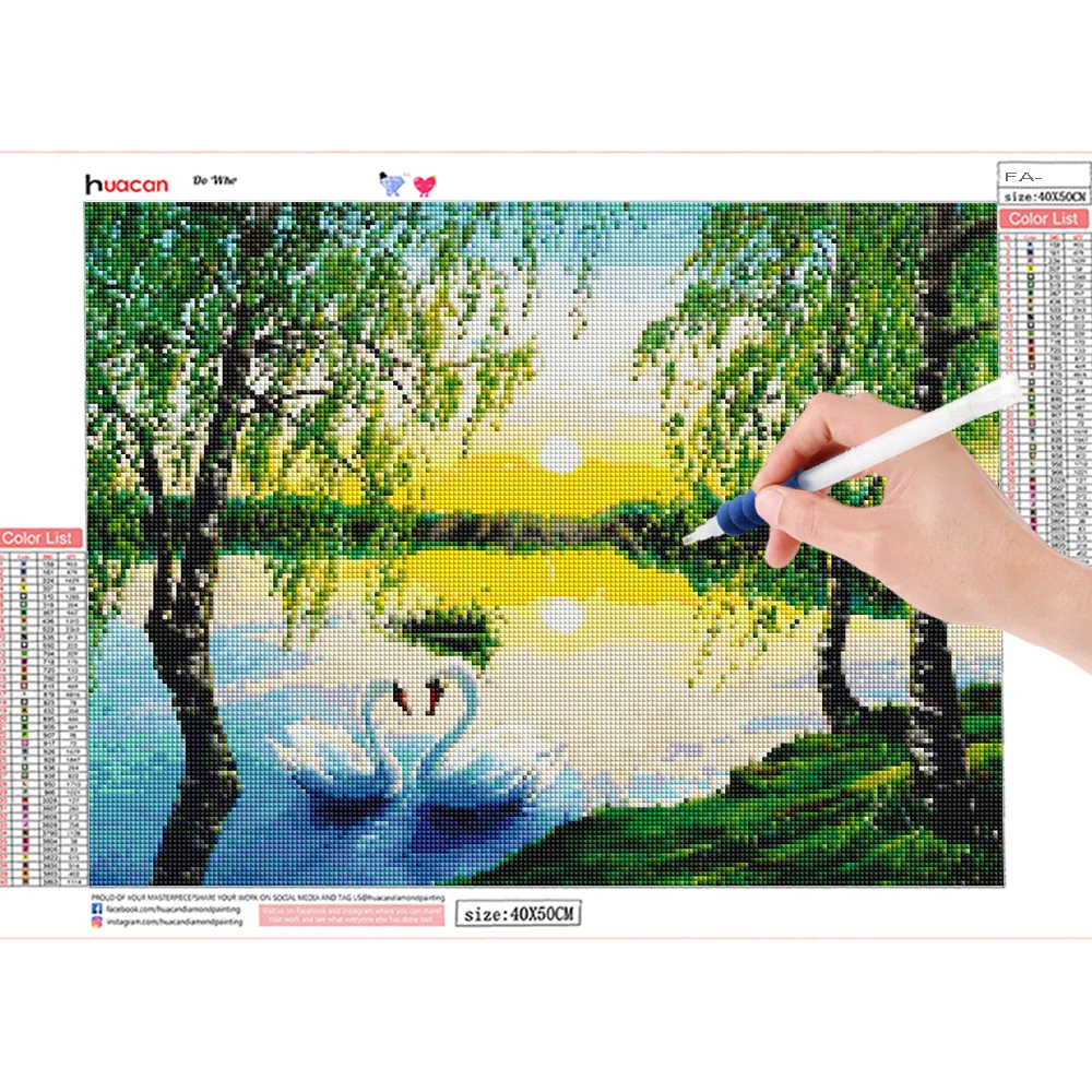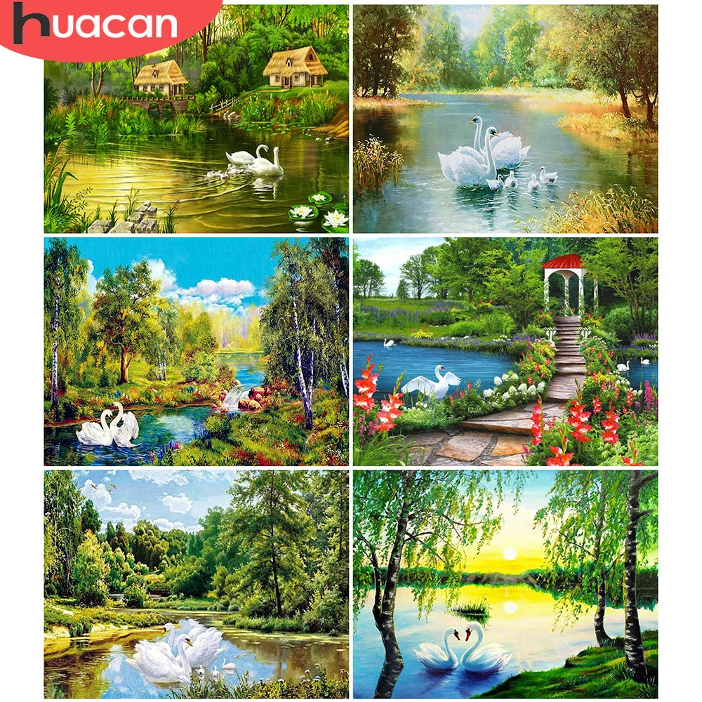 HUACAN DIY Полная квадратная алмазная живопись животные Алмазная вышивка Лебедь пейзаж Лето Стразы изображения Ёлочное украшение
