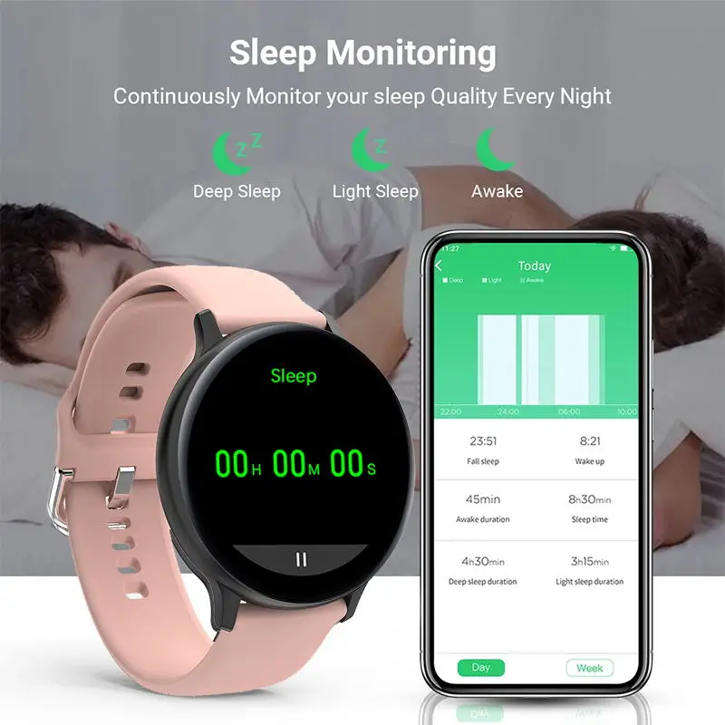 Смарт-часы LIGE водонепроницаемые, с пульсометром и монитором сна