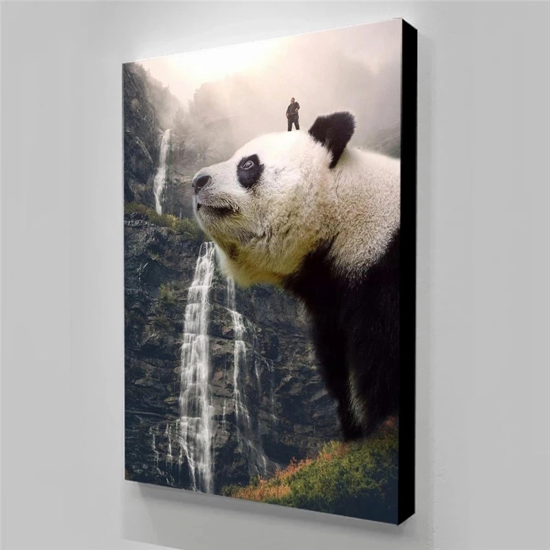 Картина Hd с изображением милой панды, водопад, крутая настенная фотокартина, постер на холсте для гостиной, украшение для дома в рамке