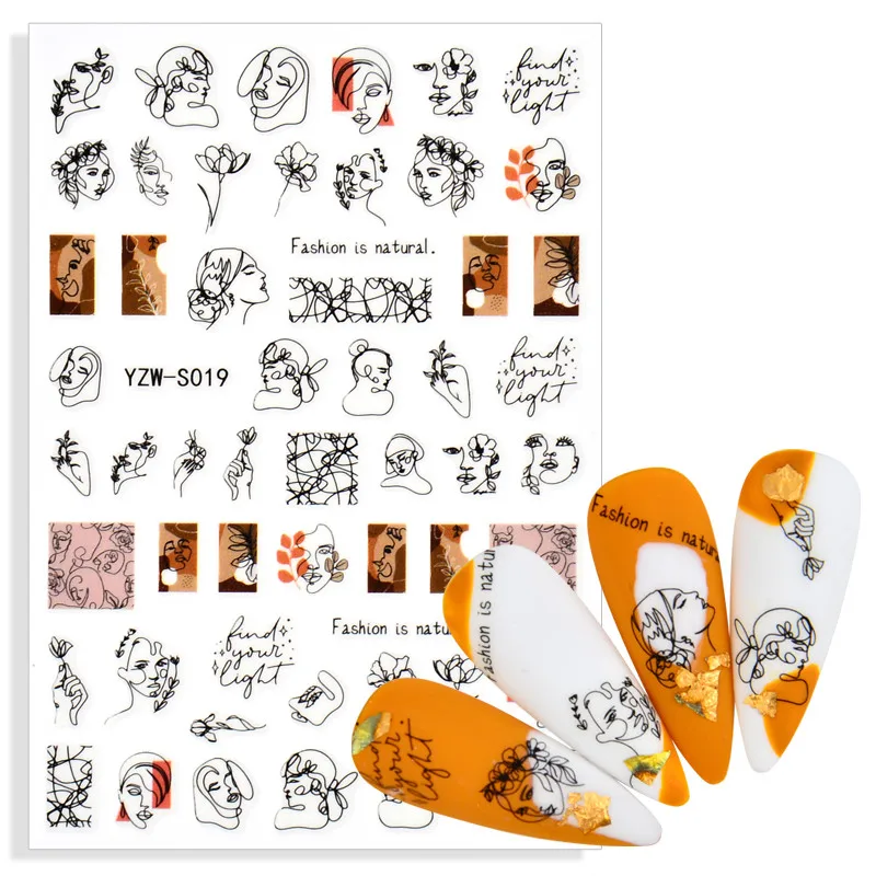 Абстрактные наклейки для ногтей с изображением лица леди, слайдеры ...