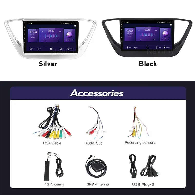 Автомобильный радиоприемник QLED 1280*720, Android 10,0, GPS-навигация, плеер для Hyundai Solaris 2 2017-2019, Восьмиядерный, 6 ГБ + 128 Гб, No 2 Din DVD
