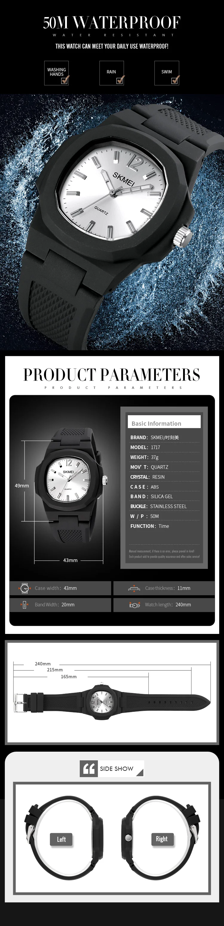 Часы наручные SKMEI Мужские кварцевые деловые, модные брендовые ударопрочные, водонепроницаемость 50 м, подарок