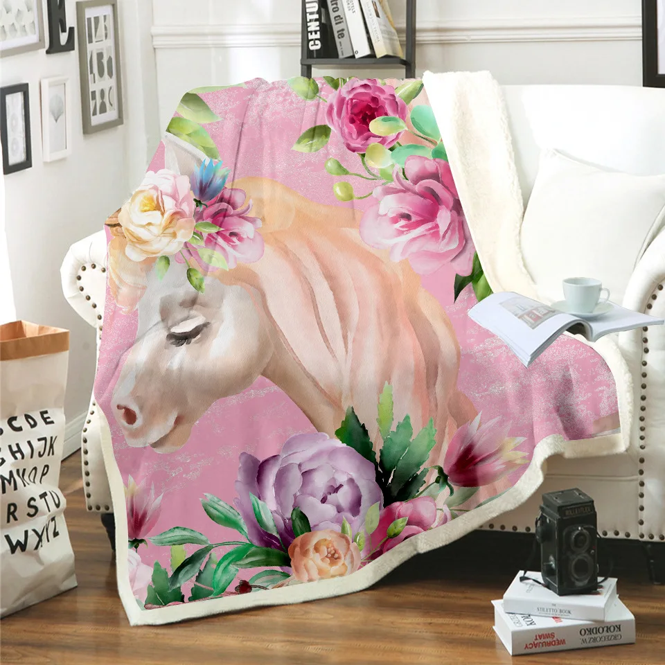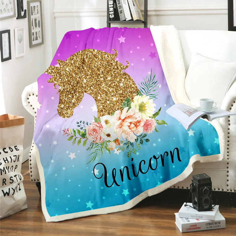 Кашемировое одеяло с принтом единорога, модное одеяло с меховой подкладкой, рождественский подарок, одеяло для детей