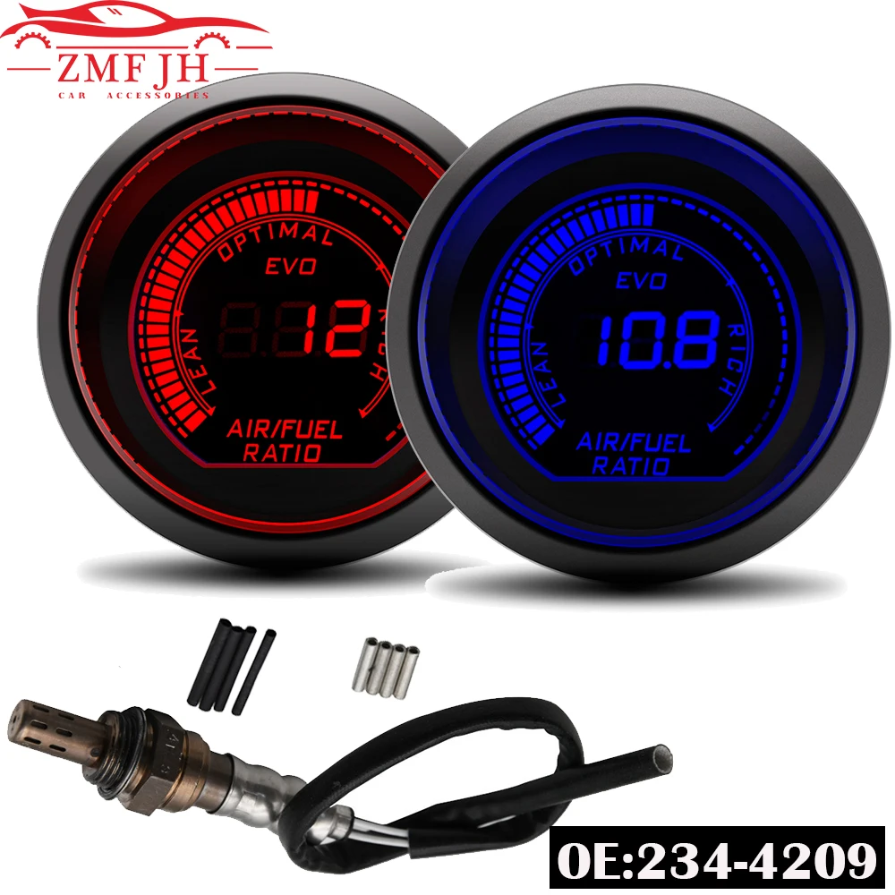 Измеритель соотношения воздуха и топлива 52 мм синийкрасный двойной светодиодный цветной цифровой с 4 проводами датчик кислорода Автомобильный датчик подходит для 12 В автомобиля для Toyota