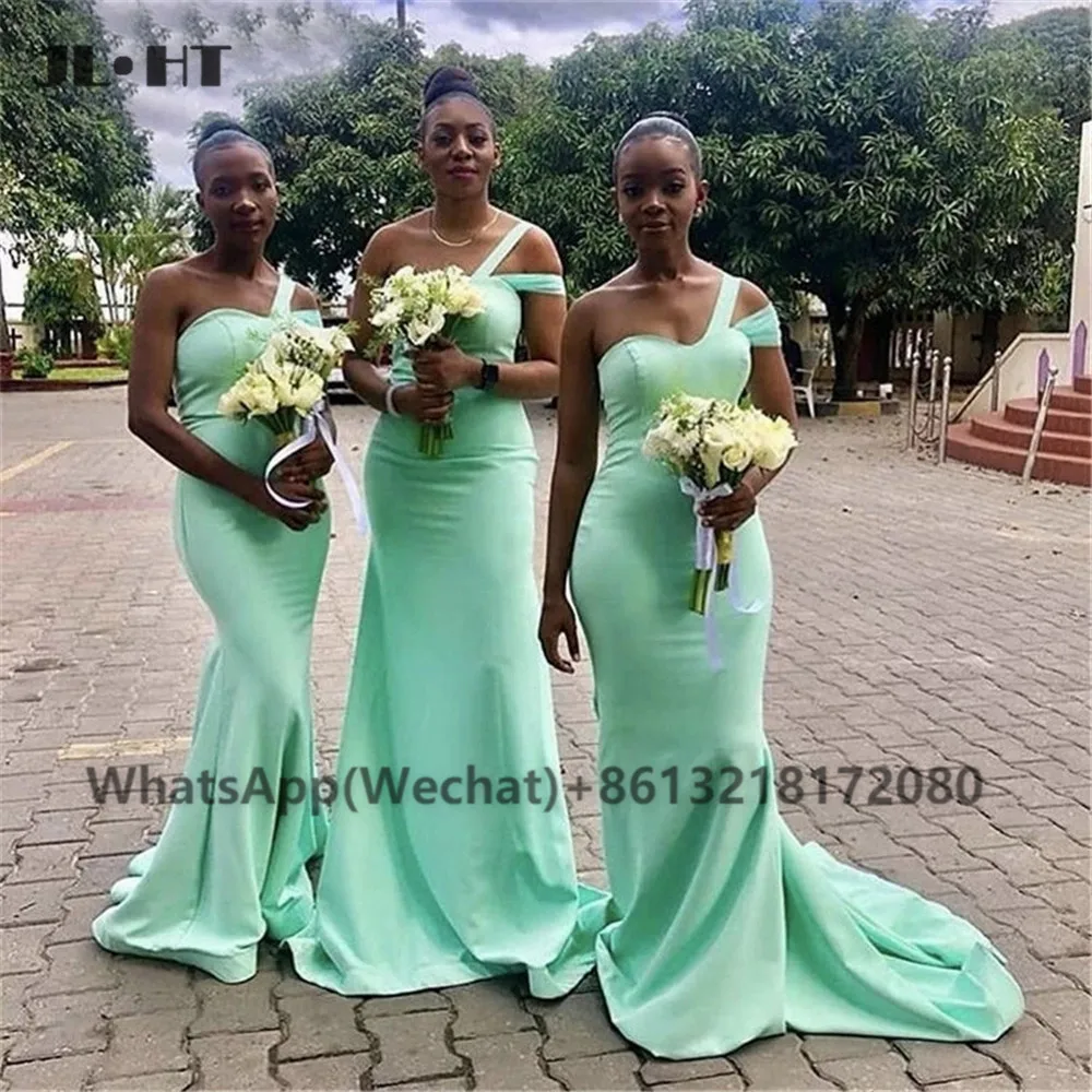2021 Африканское платье подружки невесты Тиффани Русалка длинное на одно плечо эластичное атласное платье для свадебной вечеринки платье подружки невесты для черных женщин