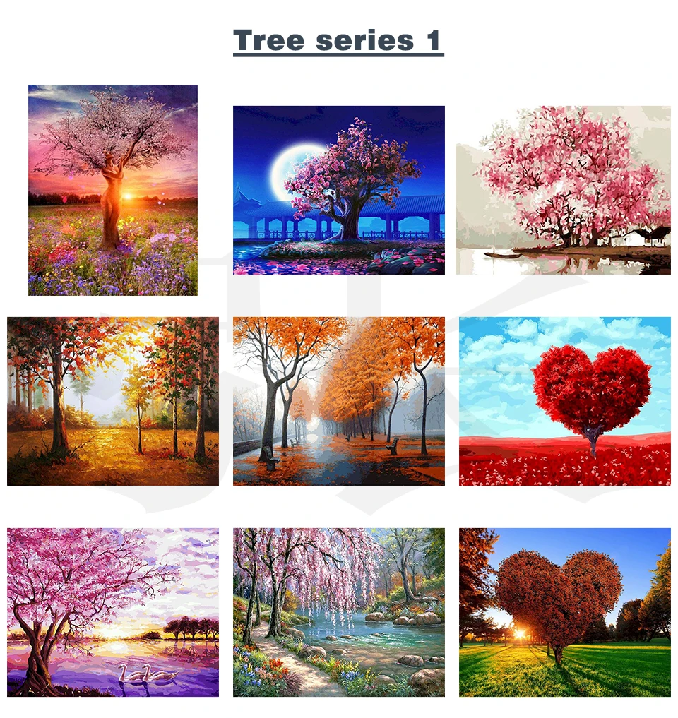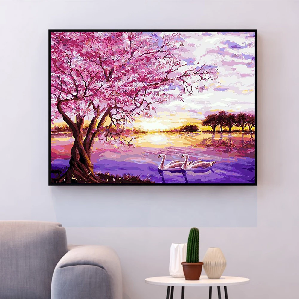 DIY картина по номерам пейзаж природы дерева Картина маслом домашний декор 40x50 см DIY рамкой расписанную холст для рисования в подарок