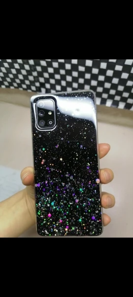 Очень красивый силиконовый чехол, блестки серебристого цвета находятся внутри самого чехлс