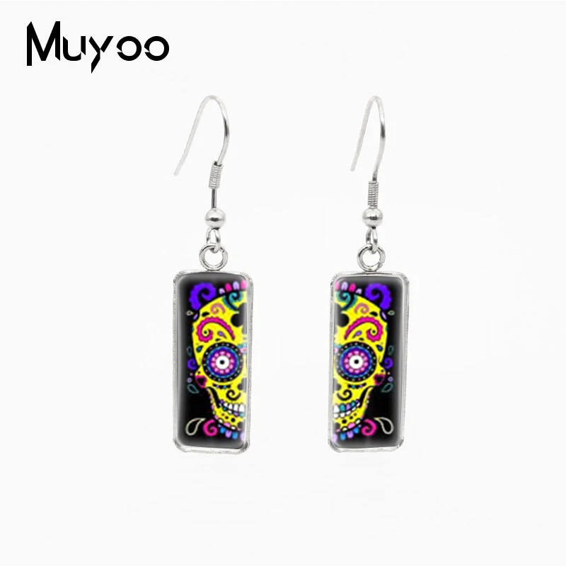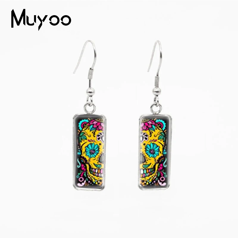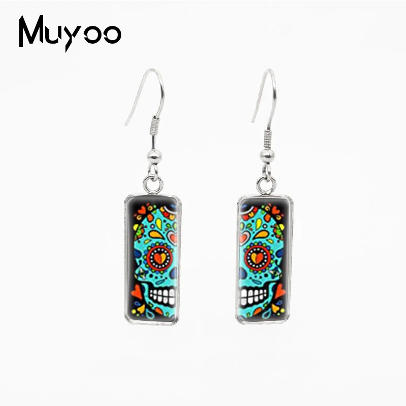 Серьги-подвески, в винтажном стиле, с разноцветными черепами и кабошоном