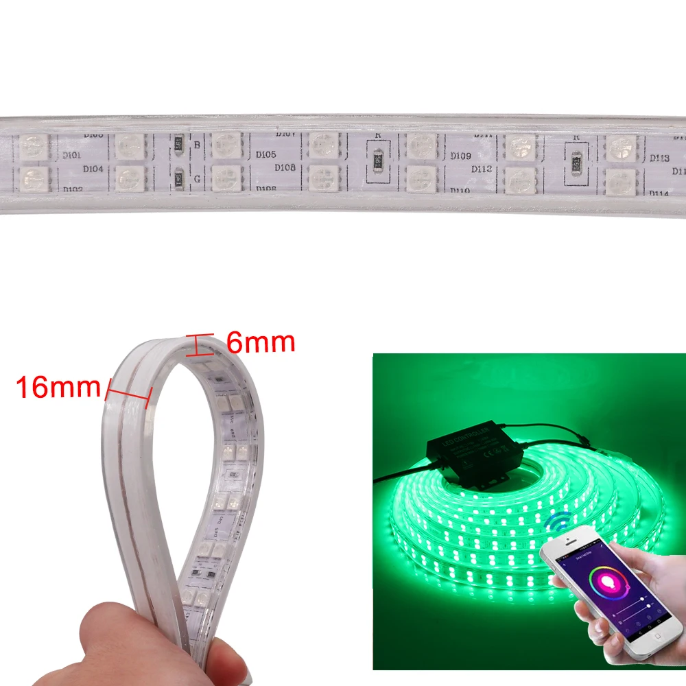 Светодиодная лента RGB с Wi-Fi управлением, 220 В, 240 светодиодов на метр, 120 Вт + пульт дистанционного управления на 24 кнопки, водонепроницаемая гибкая лента, светодиодная лента