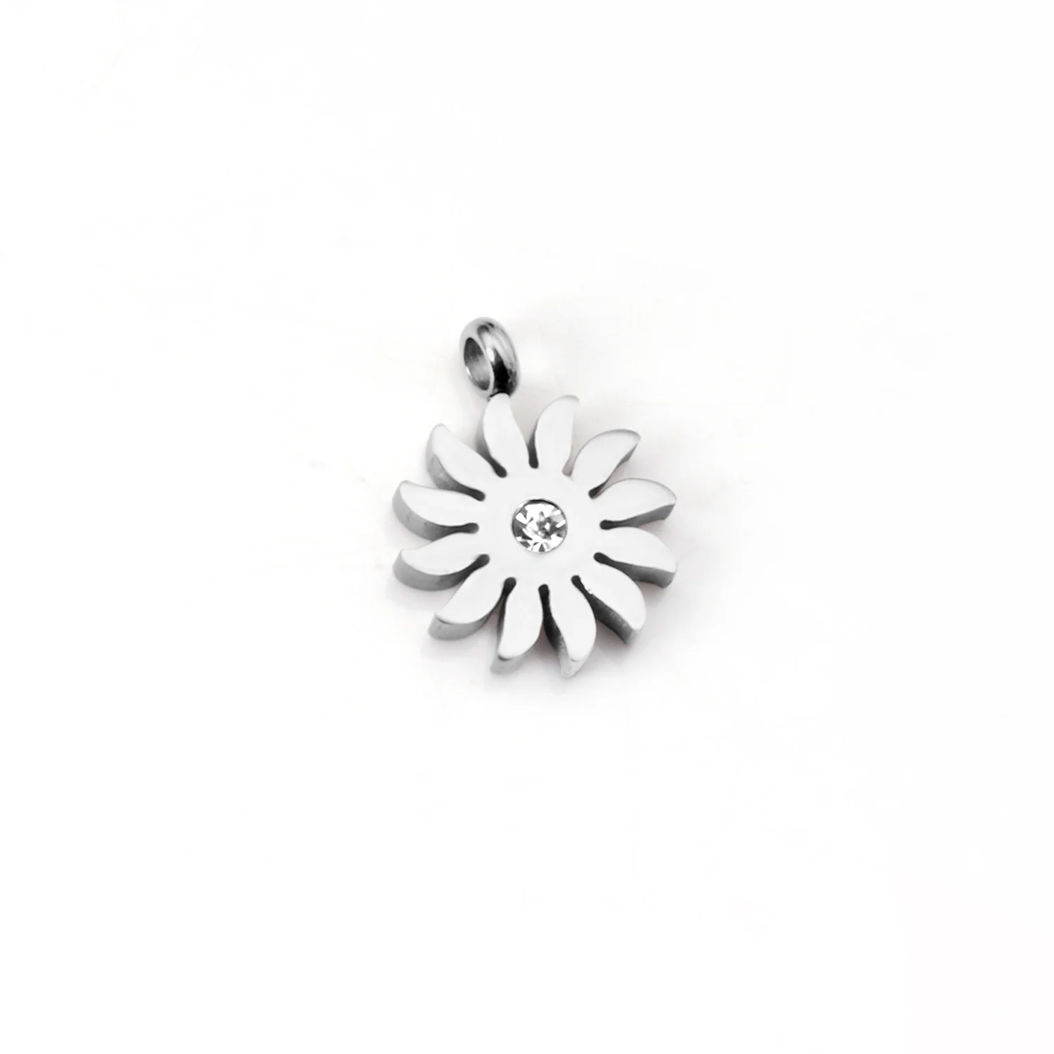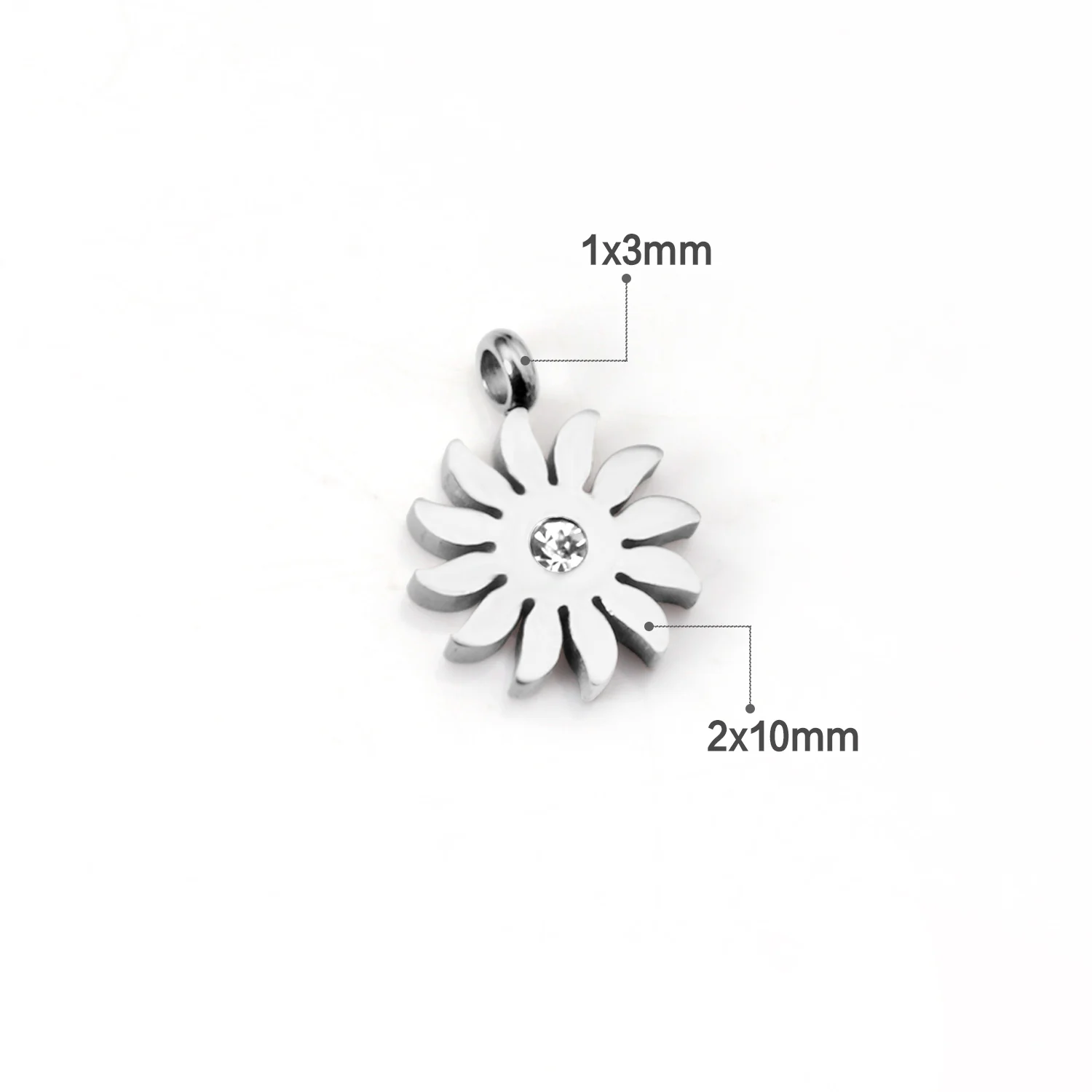Подвеска серебряная в виде цветка из нержавеющей стали с фианитами, 10 шт.лот