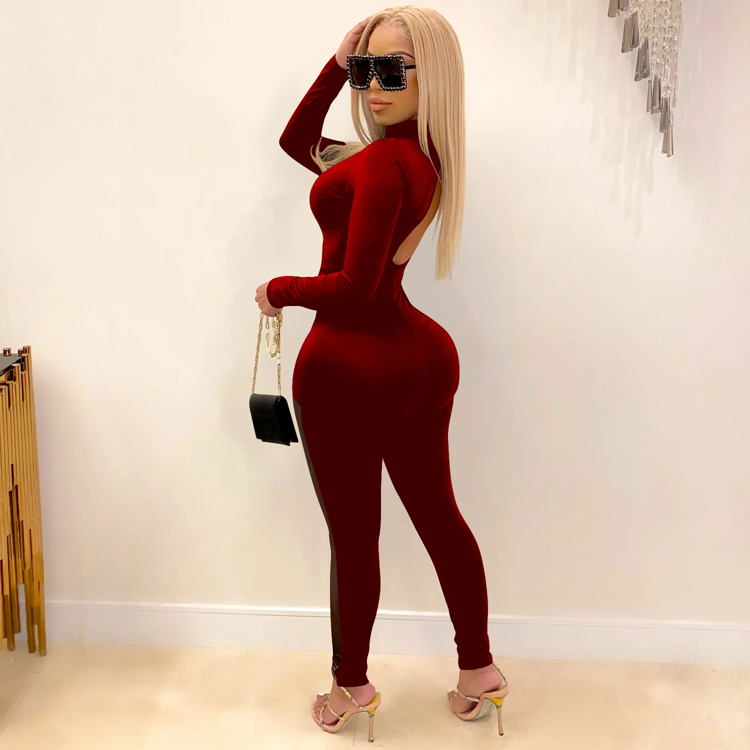 Комбинезон сетчатый вельветовый на шнуровке, с длинным рукавом