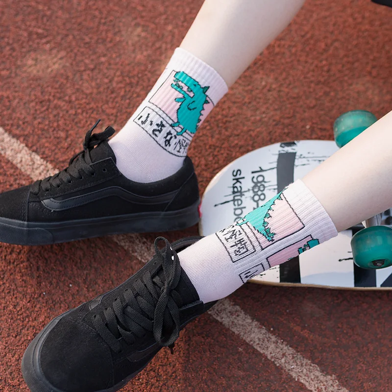 Новая мода харадзюку женские Девушки хип-хоп длинные носки с милыми животными носки с динозаврами для дам Смешные японский корейский стиль мультфильм носки корейский стиль,носки с принтом