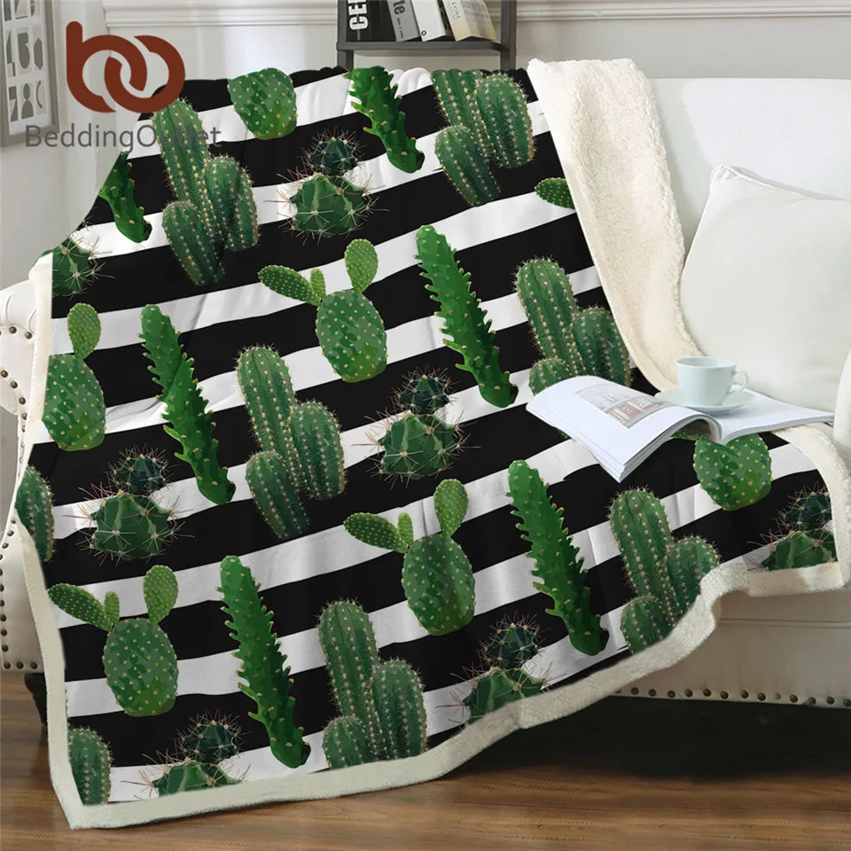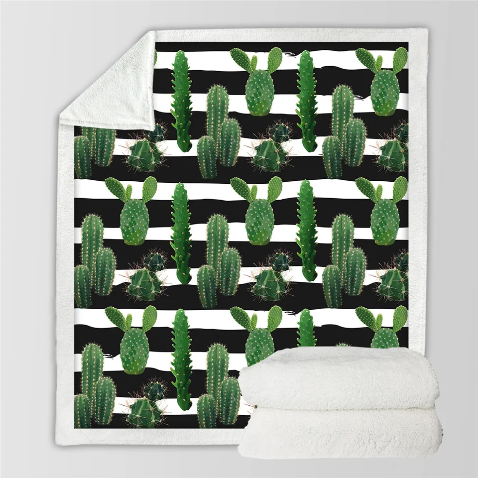 Постельное белье тропический кактус одеяло s для кроватей суккуленты плюшевое покрывало зеленое растение пледы одеяло ботанические полосатые постельные принадлежности