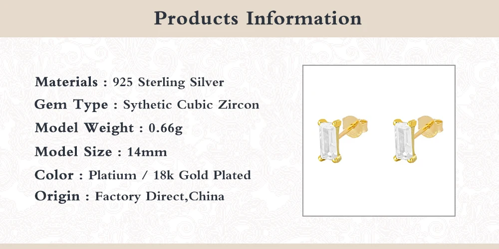 [Тип изделия]:Прямоугольные серьги-гвоздики