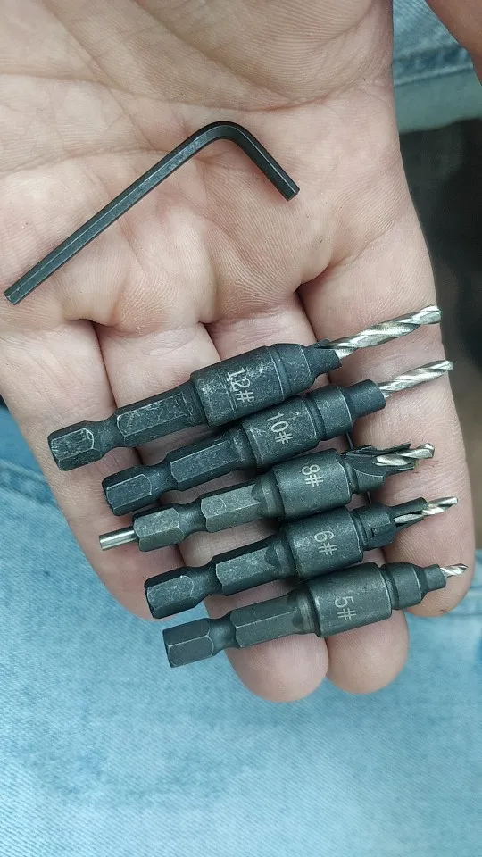 Набор из пяти предметов включает в себя сверление пилотов с отверстиями для винтовых размеров #5, #6,#8,#10 и #12
