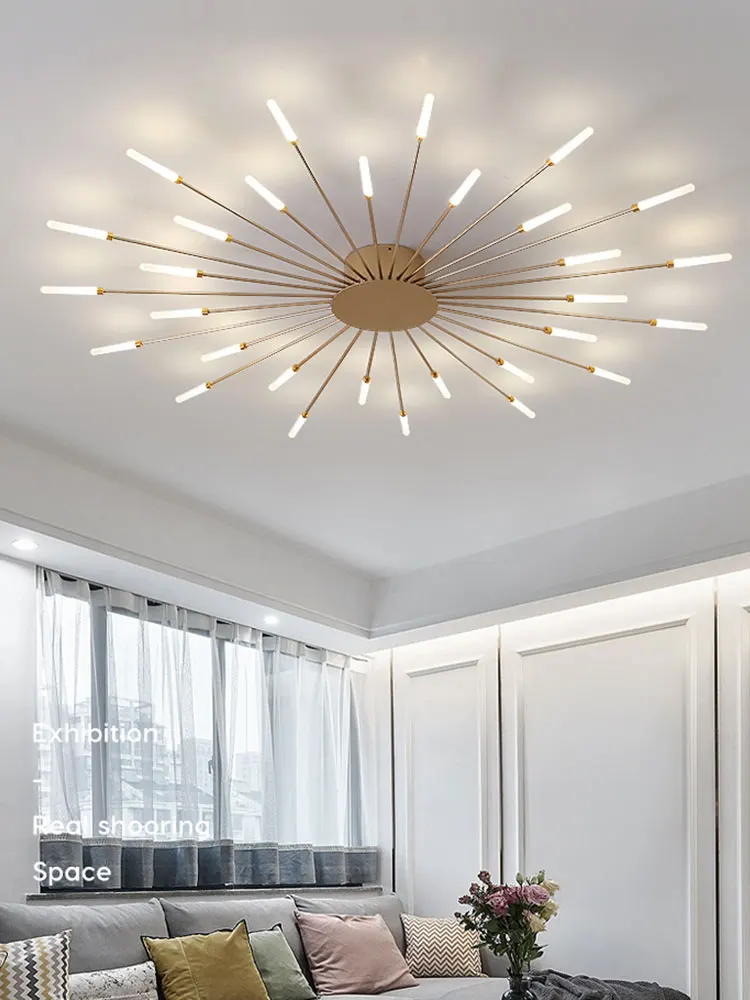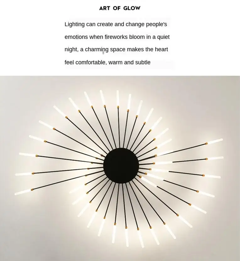 Скандинавский роскошный минималистичный светодиодный потолочный светильник, дизайнерский потолочный светильник в виде фейерверка, для гостиной, дома, несколько головок, черный или золотой