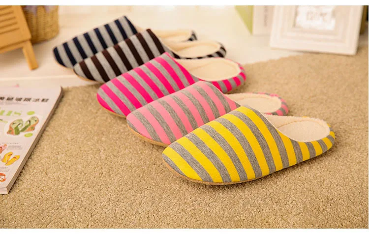 Домашние тапочки в полоску с мягкой подошвой; Теплая обувь из хлопка; Женские домашние тапочки; Нескользящая обувь; Зимние домашние женские тапочки; 45