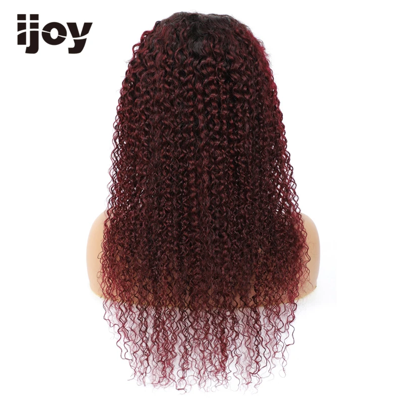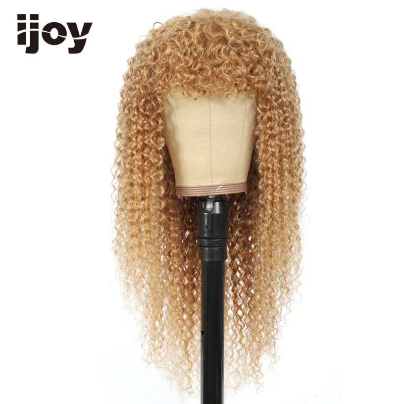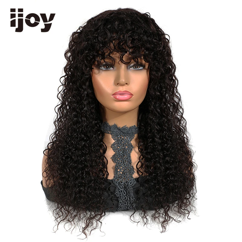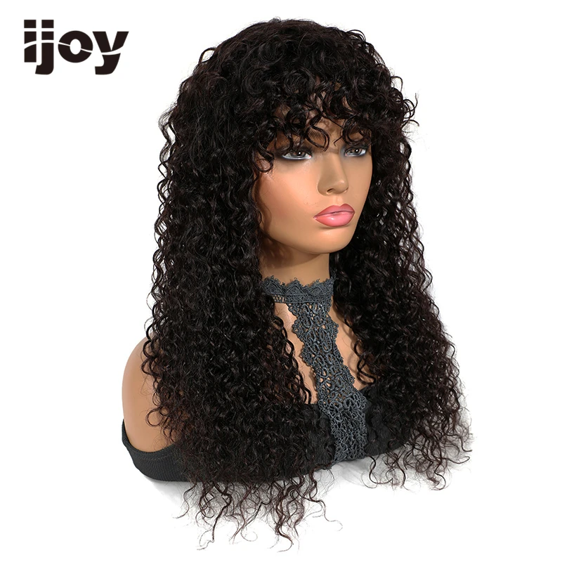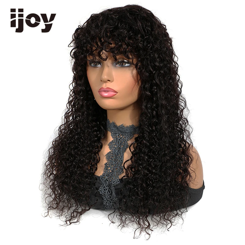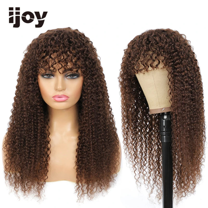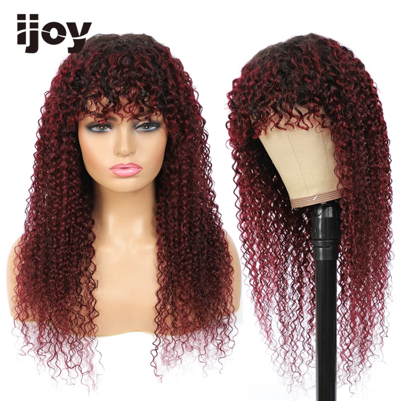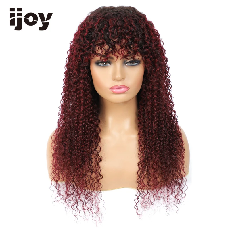 Парик из человеческих волос с челкой, кудрявые, кудрявые волосы, цветные, черные, коричневые, бордовые, бразильские волосы, парики для женщин без повреждений IJOY
