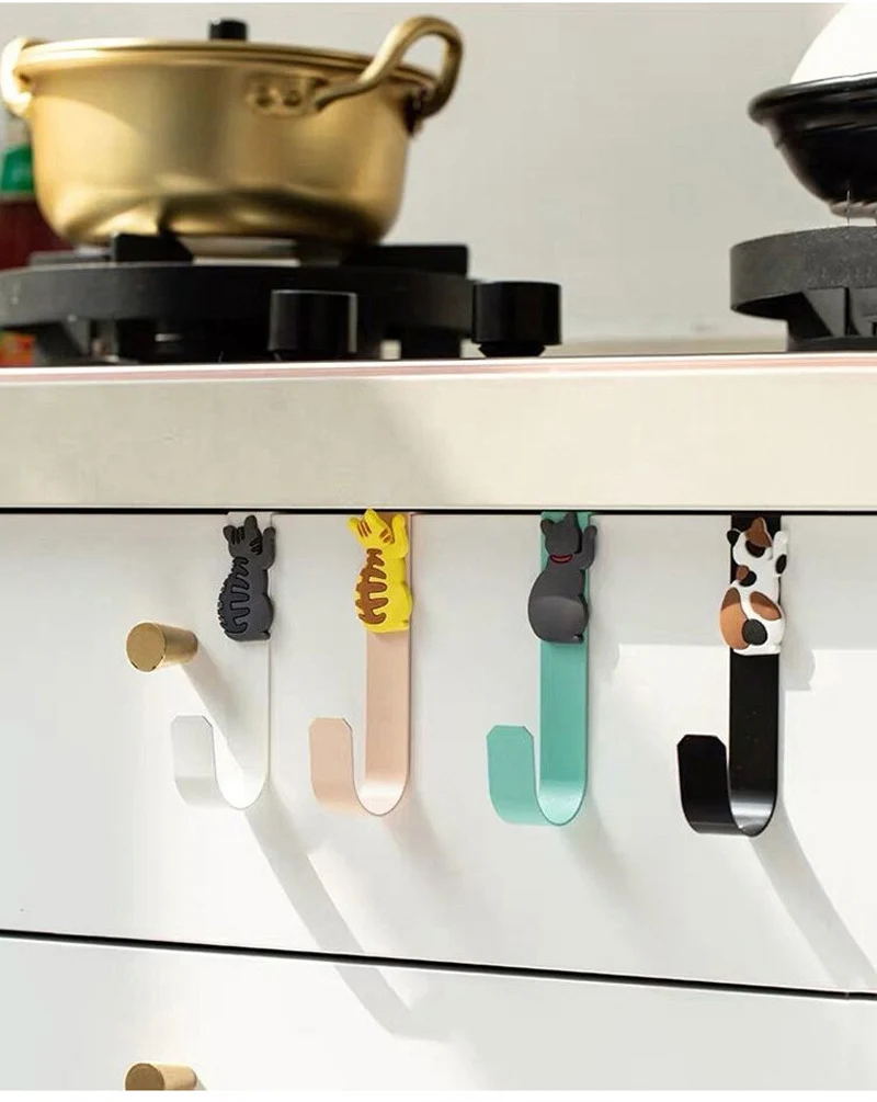 Креативные крючки в форме кошки, вешалка над дверью, крючки за задней стенкой двери, крючки для хранения из нержавеющей стали, крючки для кухни, шкафа, одежды