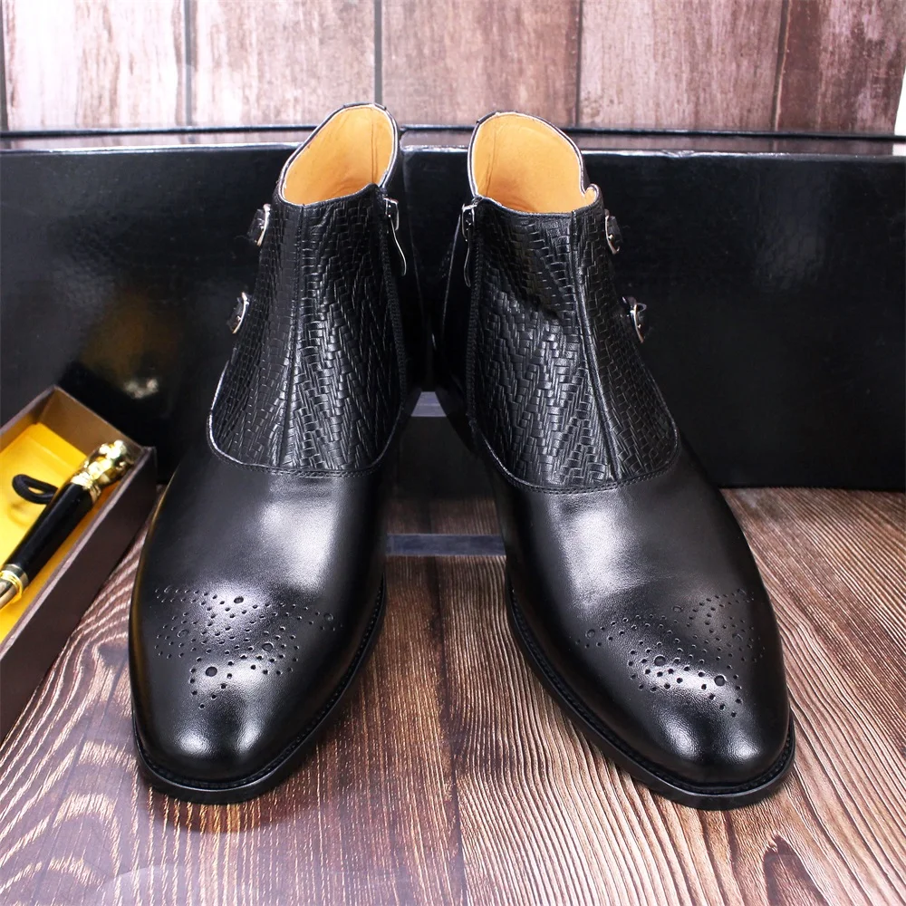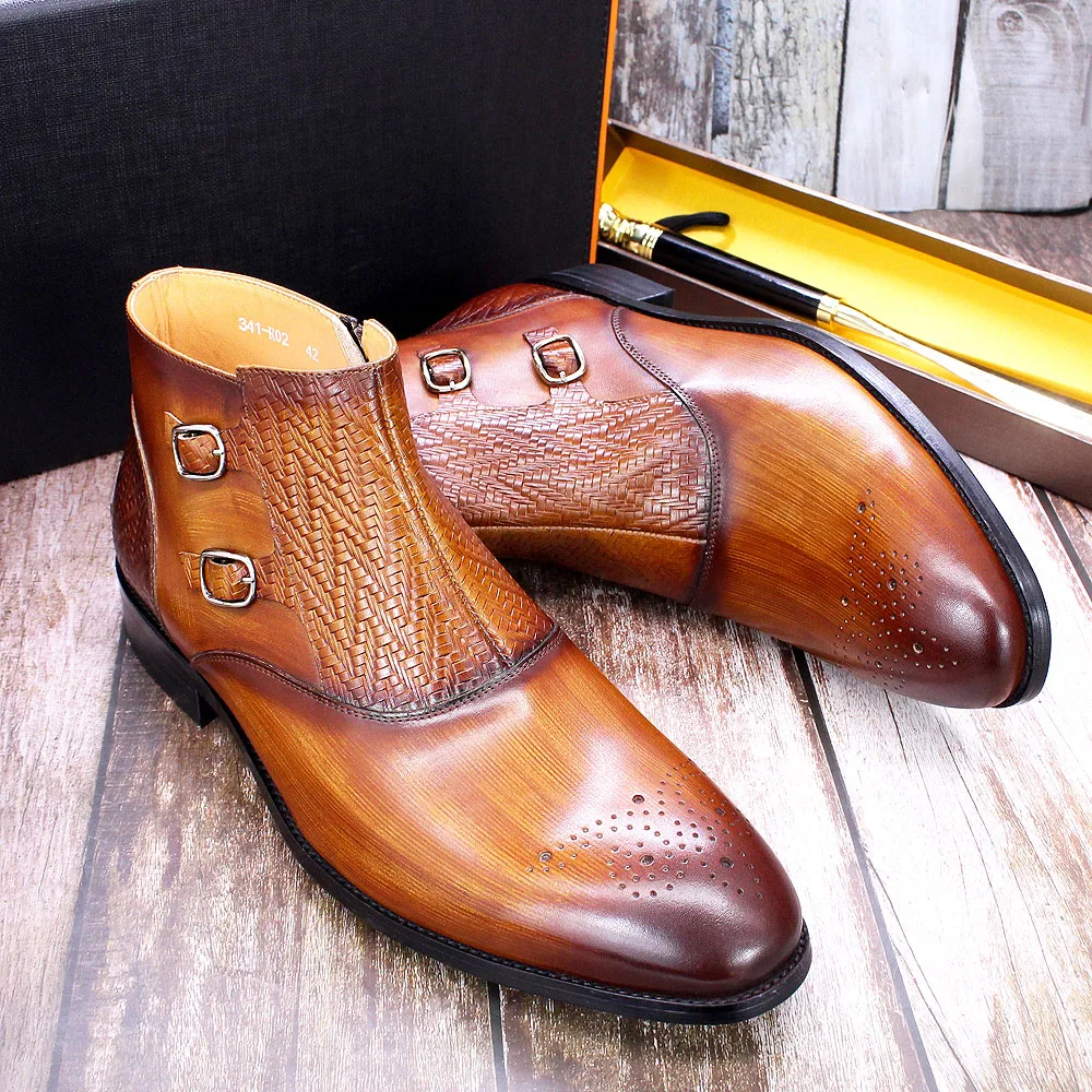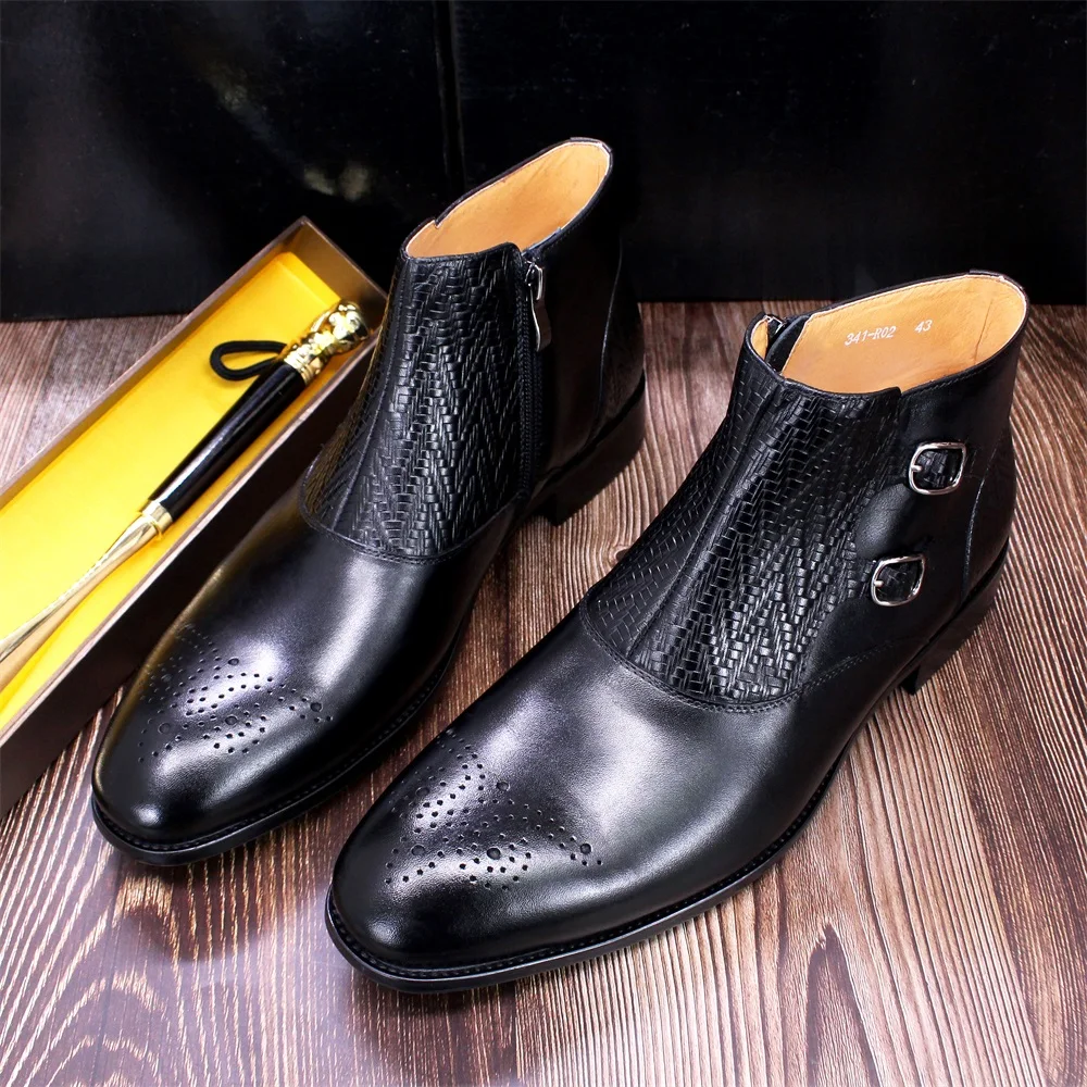 Мужские ботильоны в британском стиле из натуральной кожи ручной работы на молнии с ремешком и двойной пряжкой высокие модные классические ботинки черные мужские ботинки